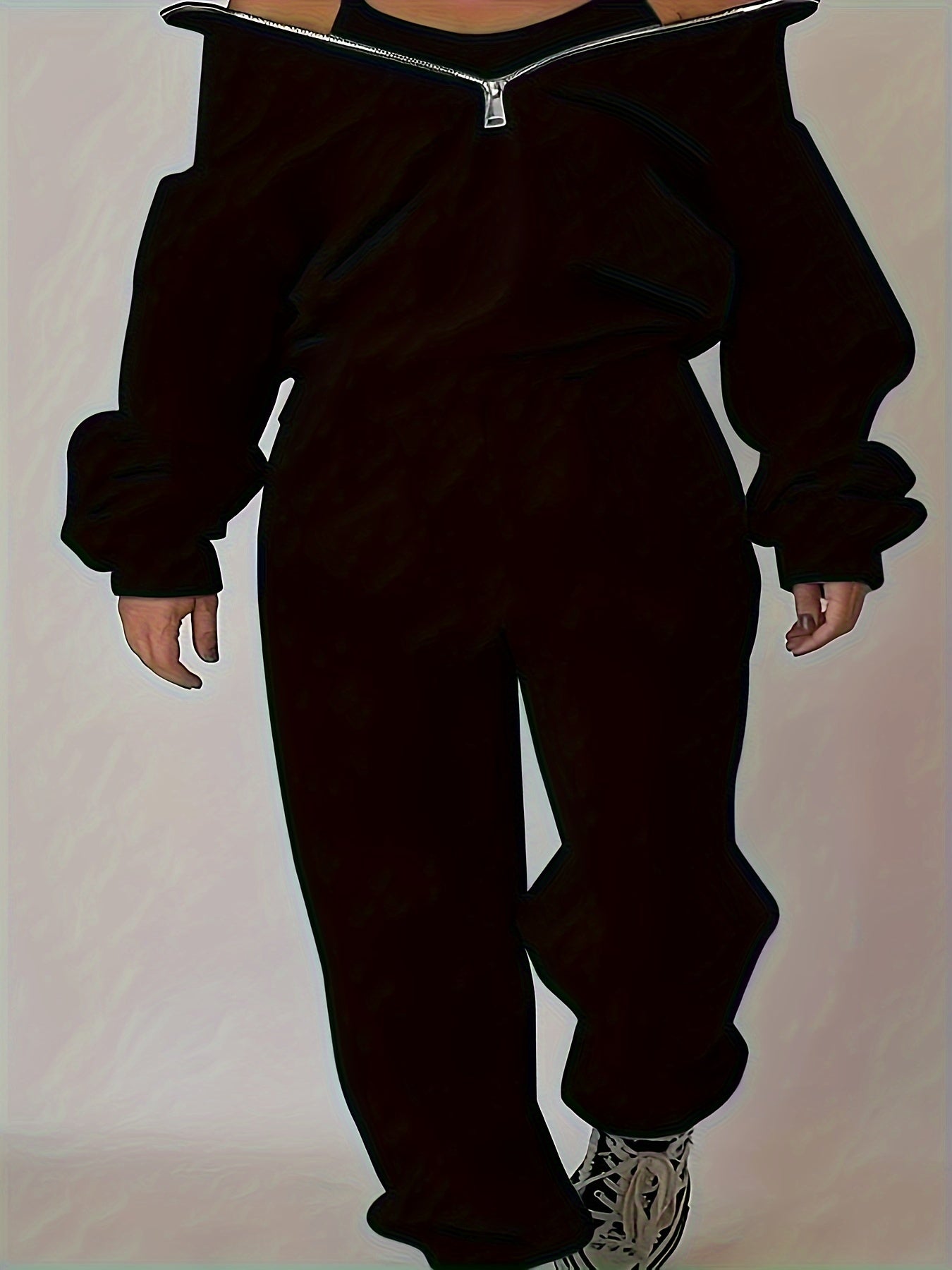 Ayollar uchun zip oldi sviter va elastik belli shimlardan iborat mustahkam ikki qismli to'plam.