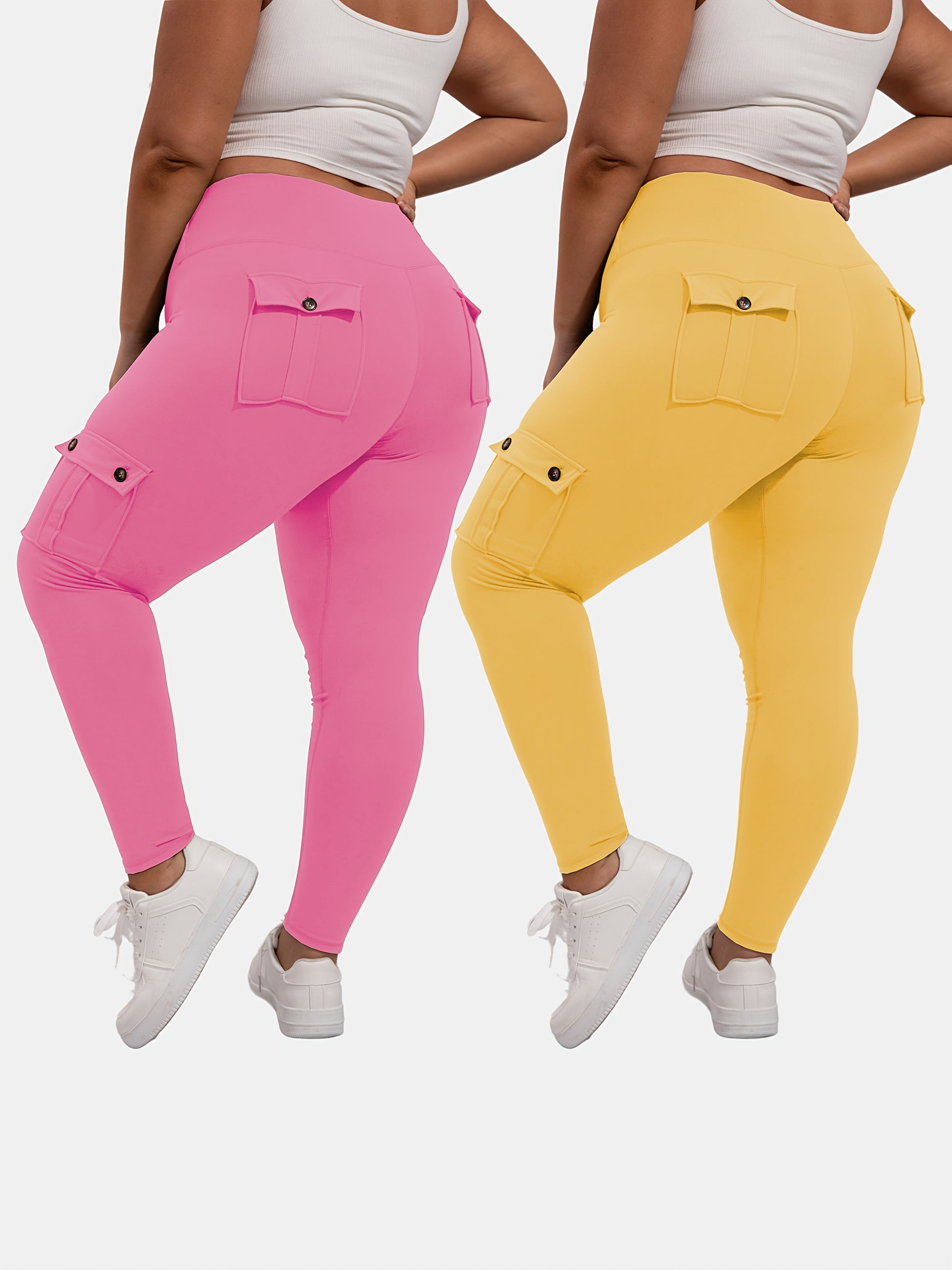 Ayollar uchun sport legginslari yuqori bel, qorin nazorati, namlikni olib tashlovchi, yugurish va yoga uchun, qora, 2 ta paket