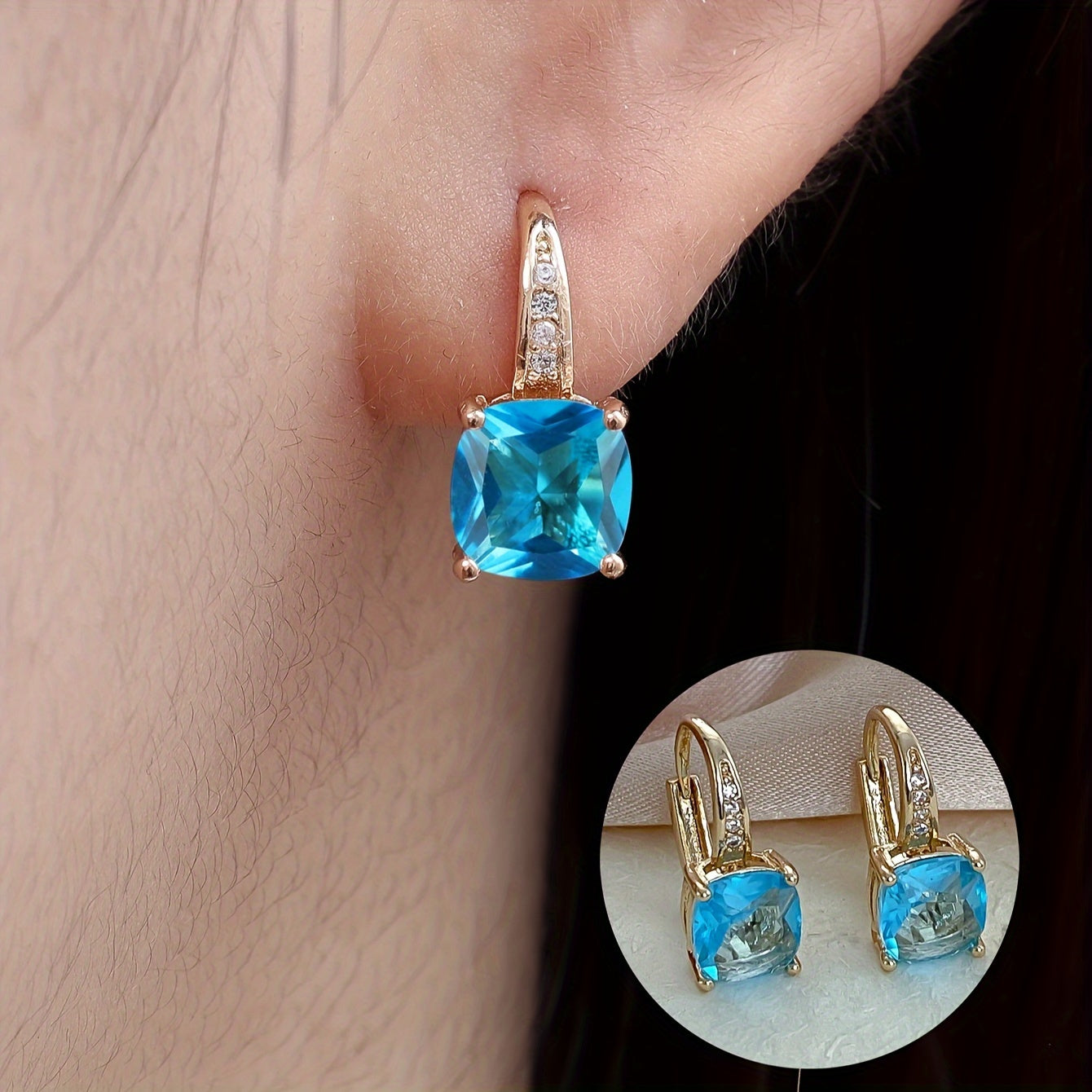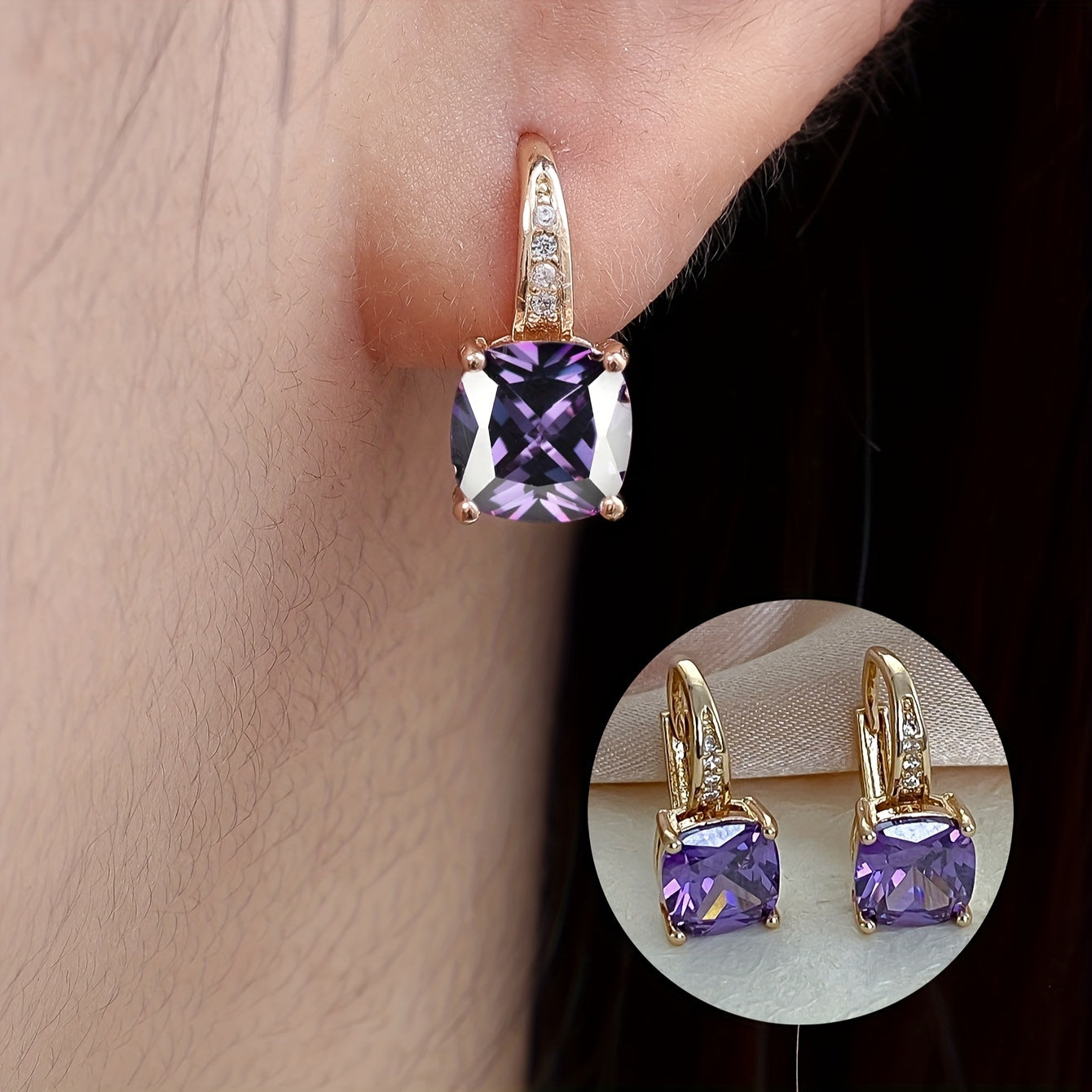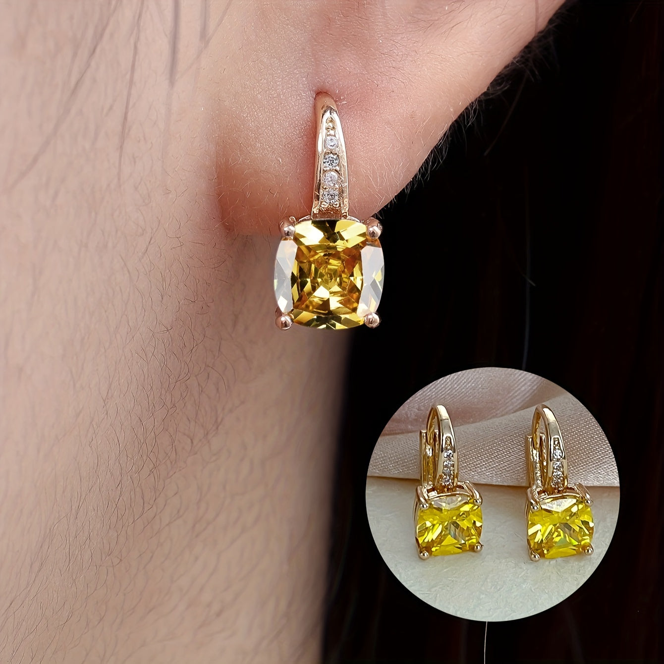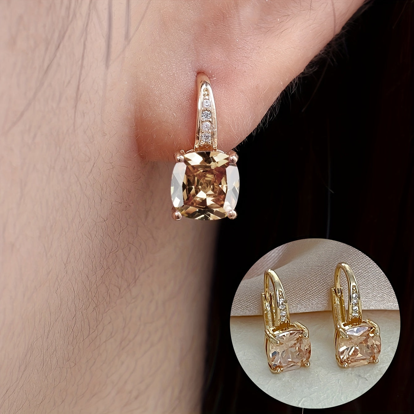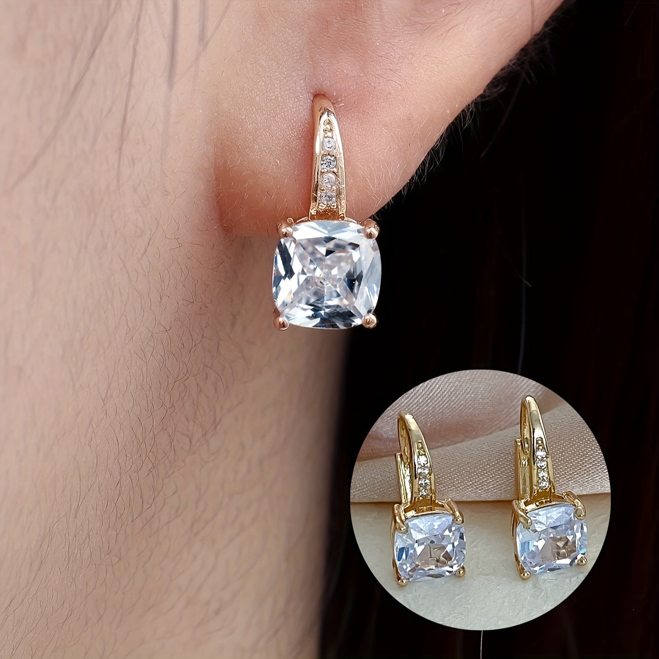 Ayollar uchun kvadrat shaklidagi kubik zirkoniy stud uzuklar, 18K oltin bilan qoplangan mis, moda zargarlik buyumlari