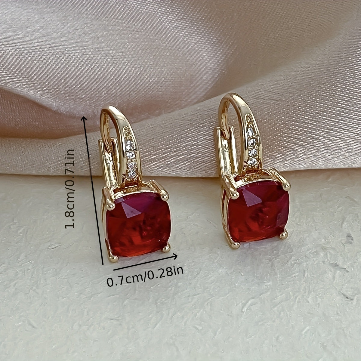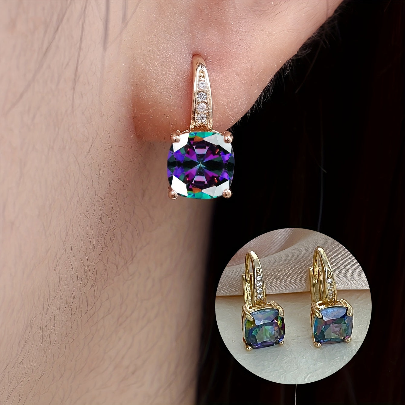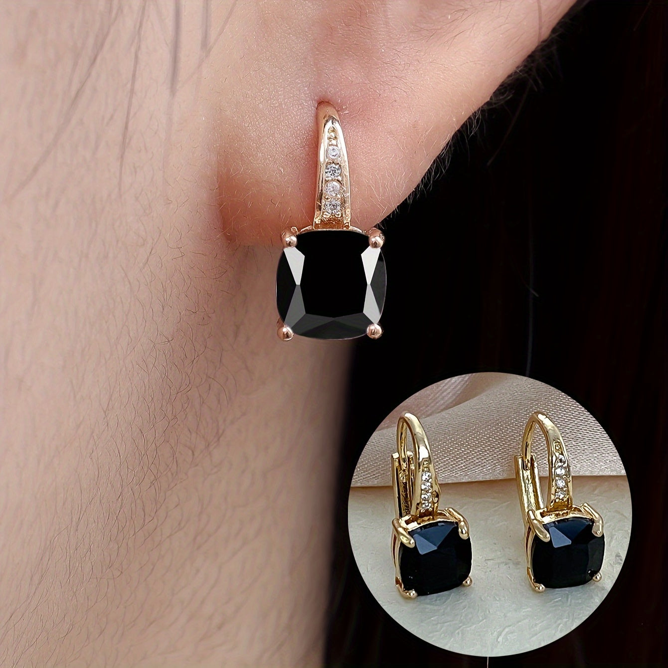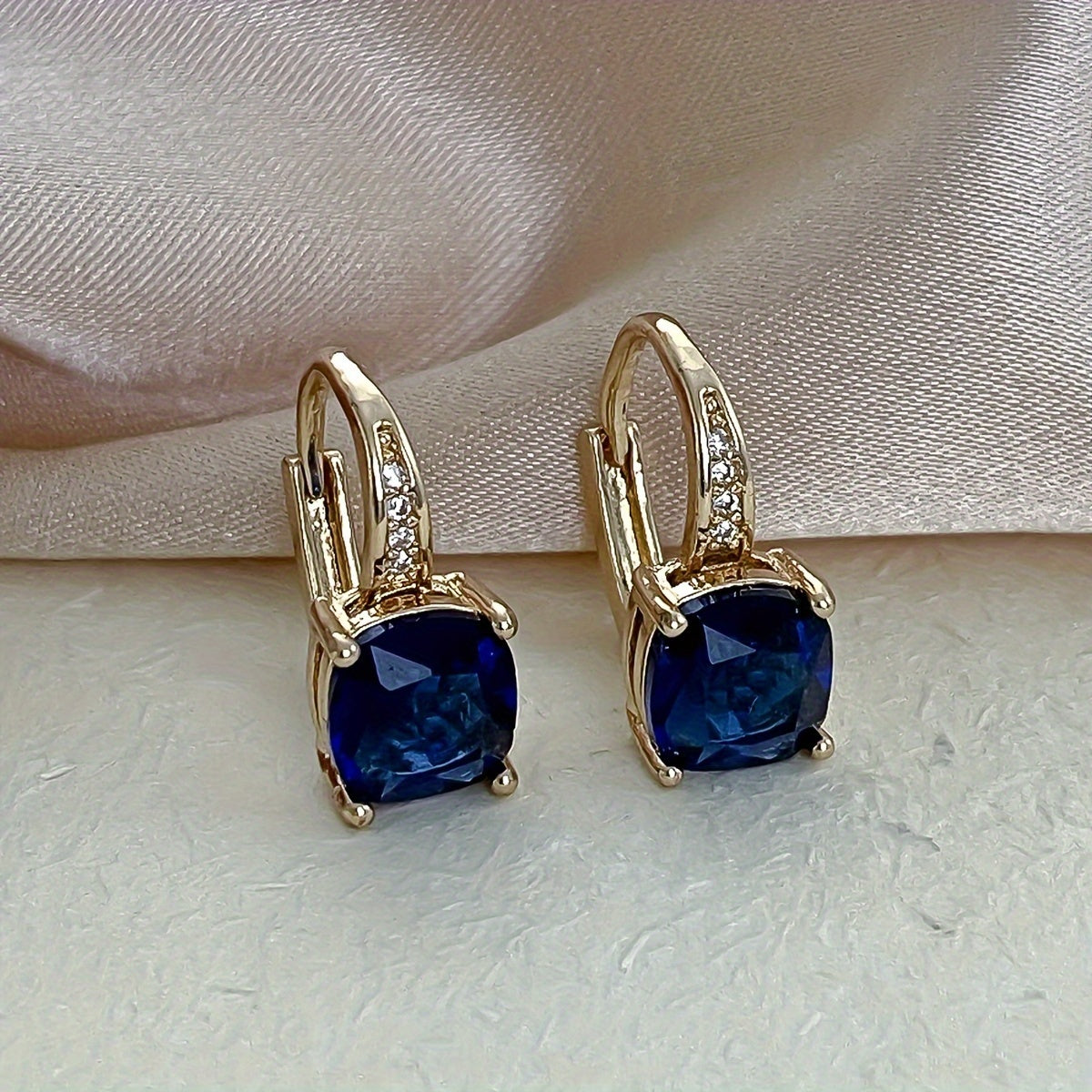Ayollar uchun kvadrat shaklidagi kubik zirkoniy stud uzuklar, 18K oltin bilan qoplangan mis, moda zargarlik buyumlari