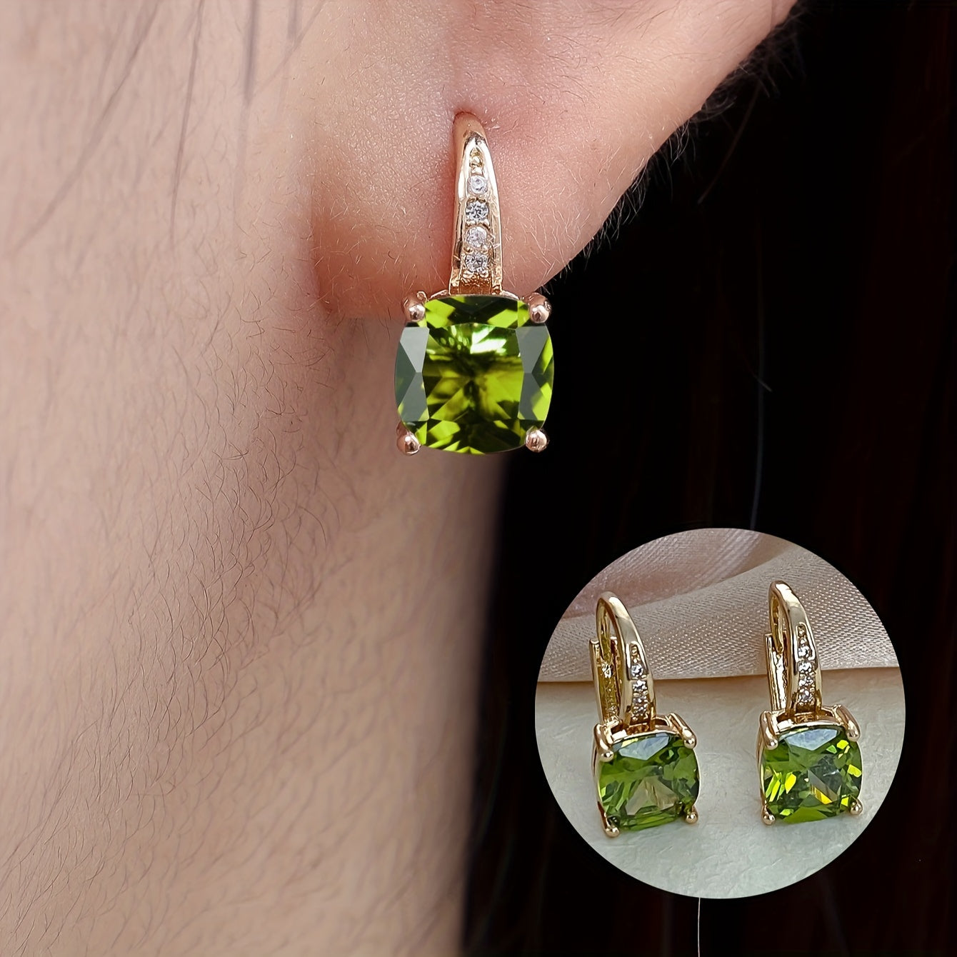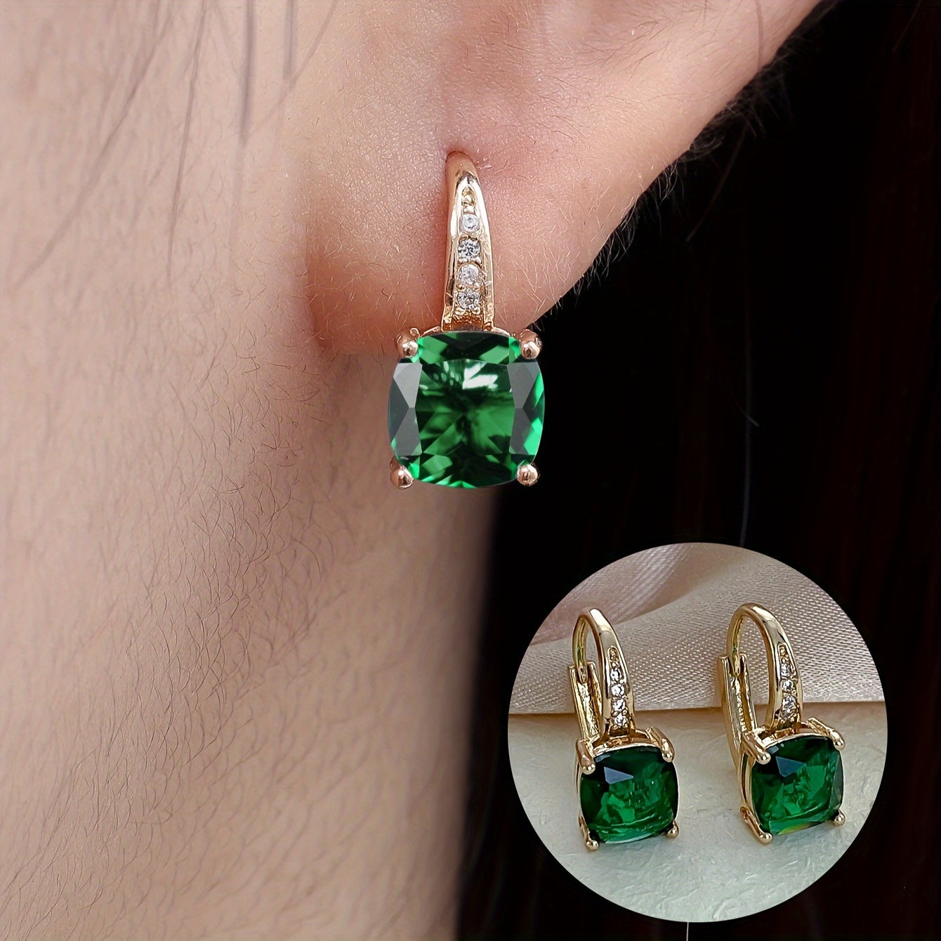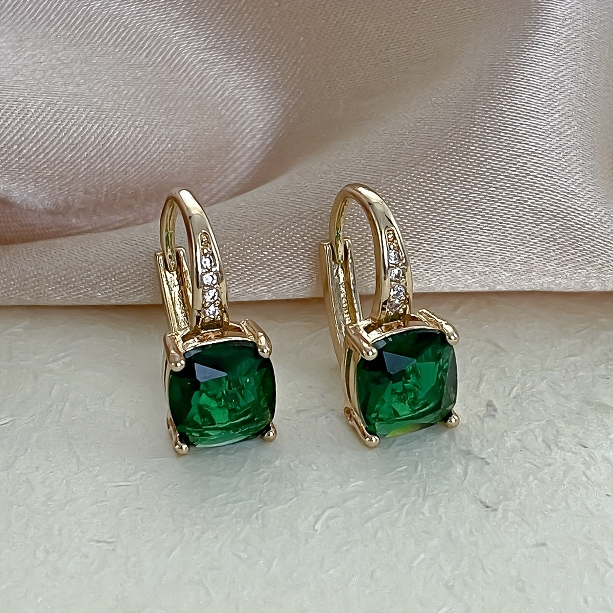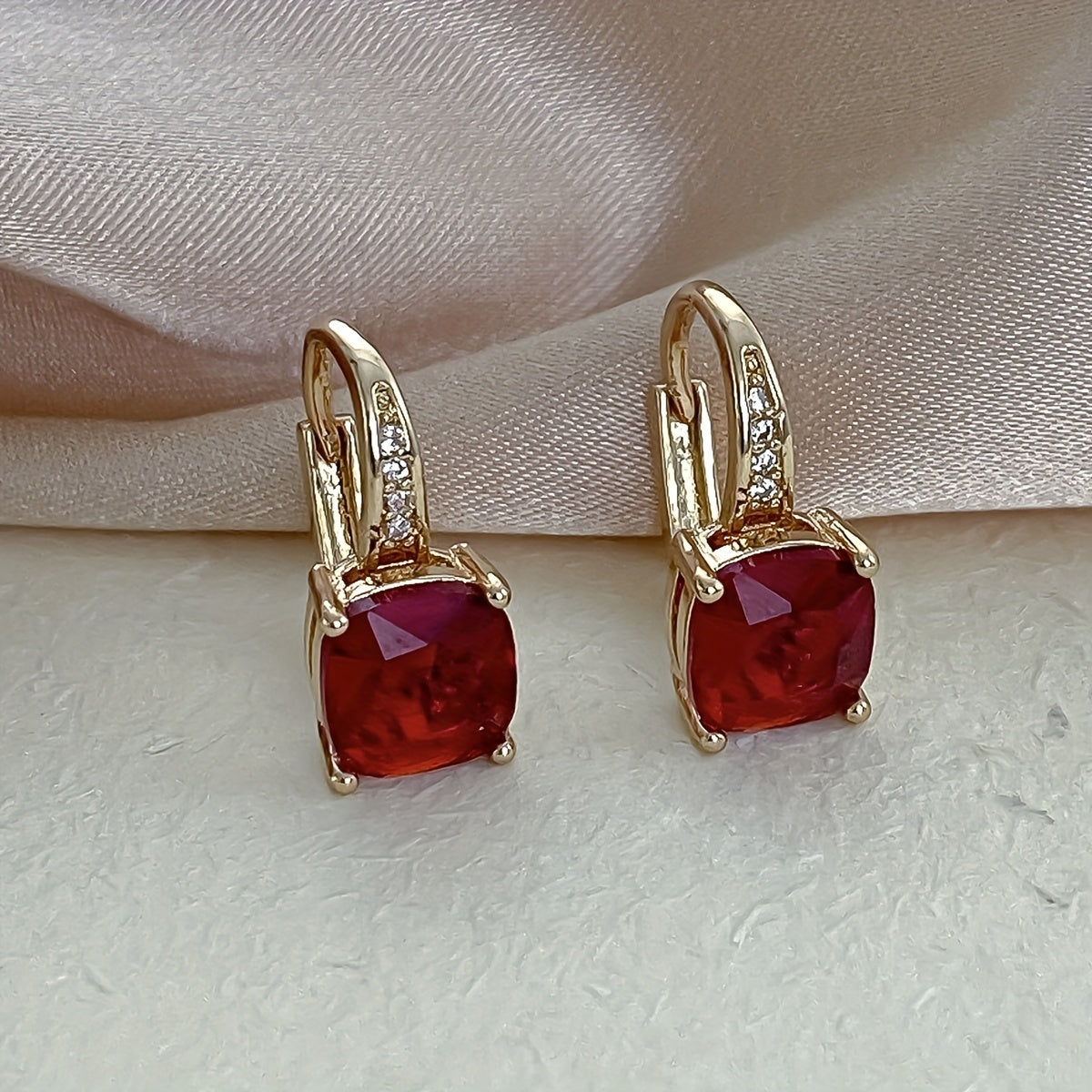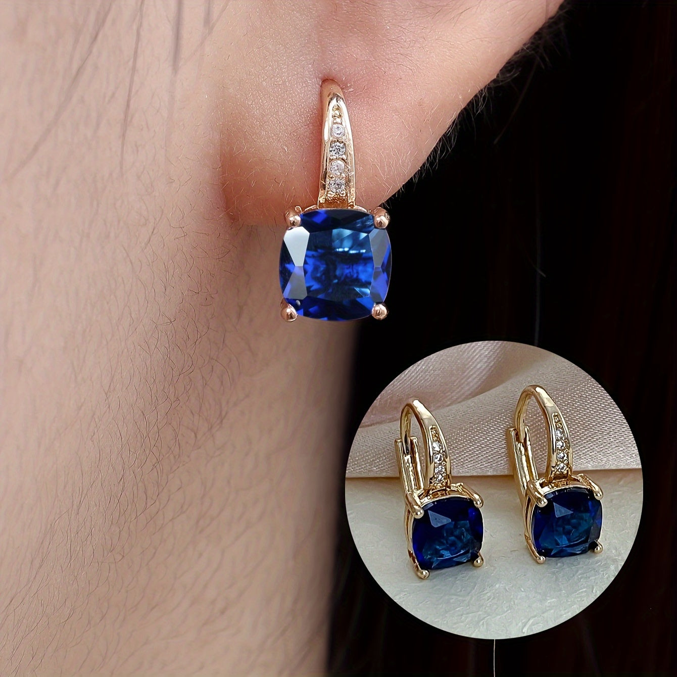 Ayollar uchun kvadrat shaklidagi kubik zirkoniy stud uzuklar, 18K oltin bilan qoplangan mis, moda zargarlik buyumlari