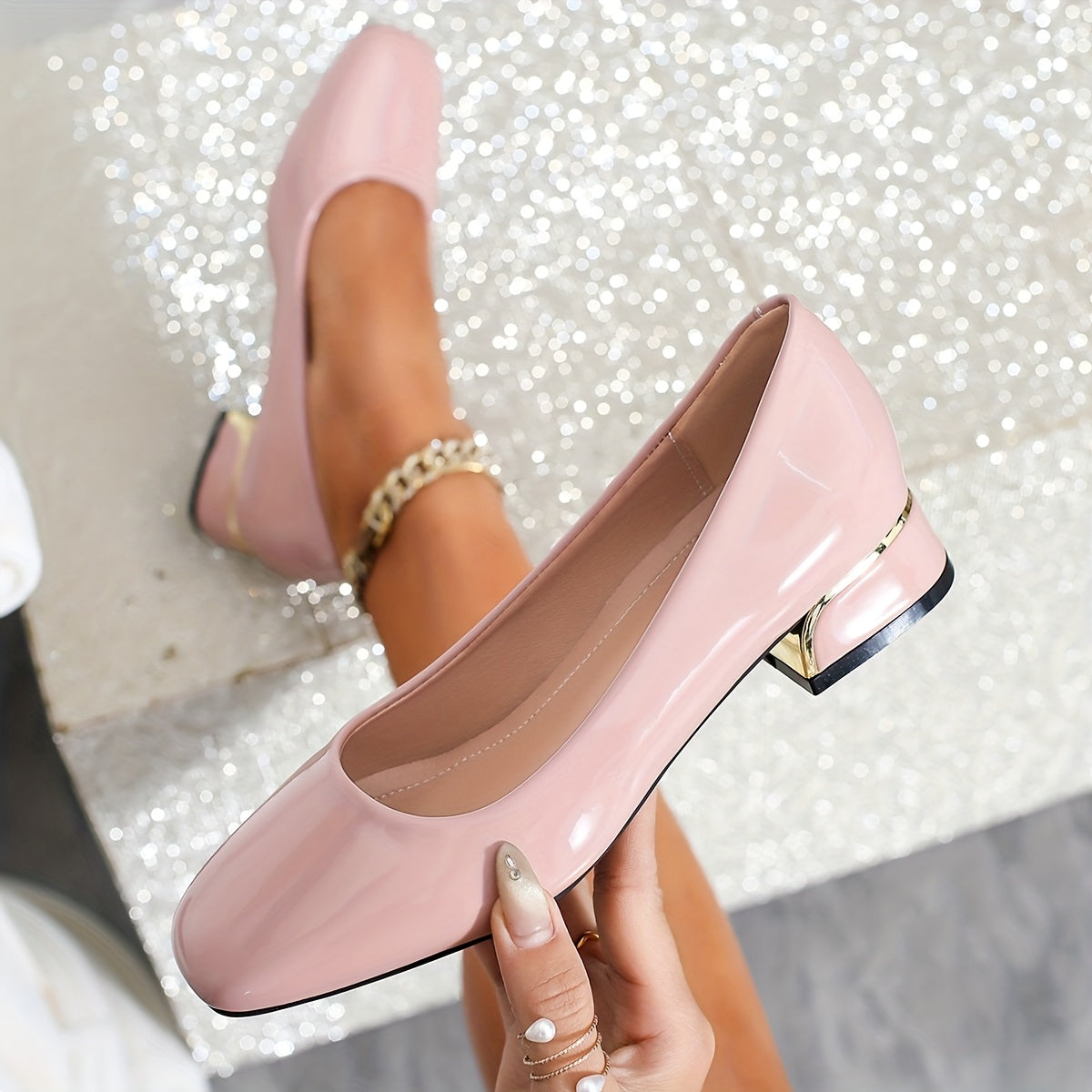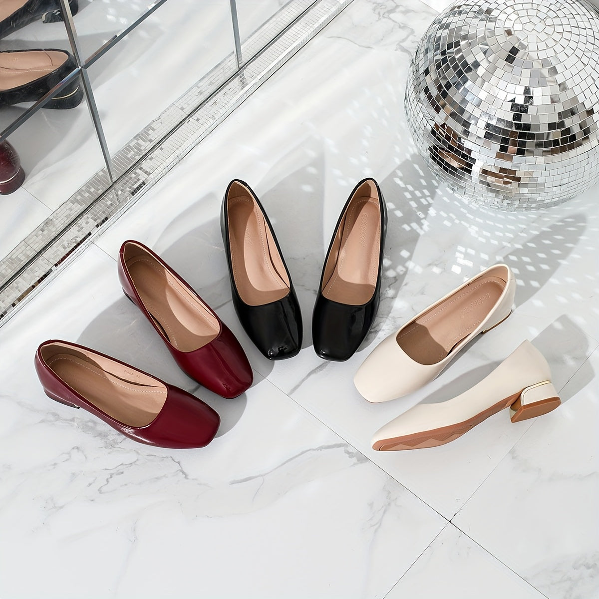 Ayollar uchun kvadrat barmoqli poyabzal, kundalik, bir rangli, past blok poyafzal, kiyinadigan poyabzal