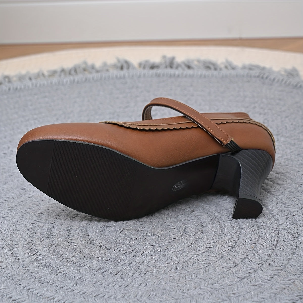 Women's Synthetic High Heel Shoes with Ankle Strap Brown Black Round Toe