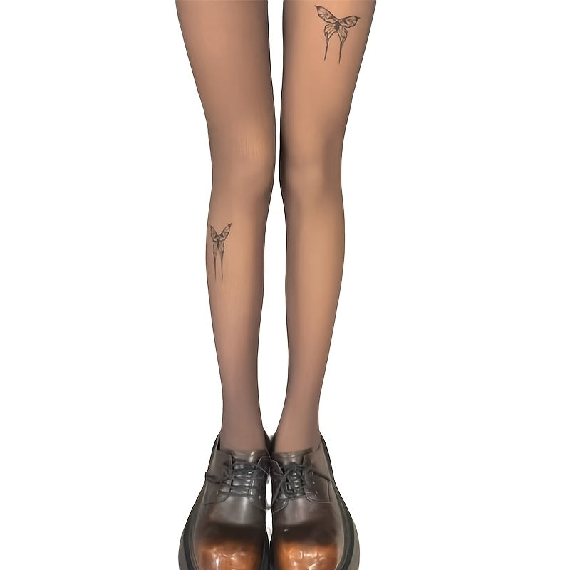 Ayollar uchun termal fleece astarli taytlar, kapalak naqshi, kamon tafsiloti, 80% polyester va 20% spandeksdan tayyorlangan, qo'l bilan yuvish mumkin, qora paypoqlar.
