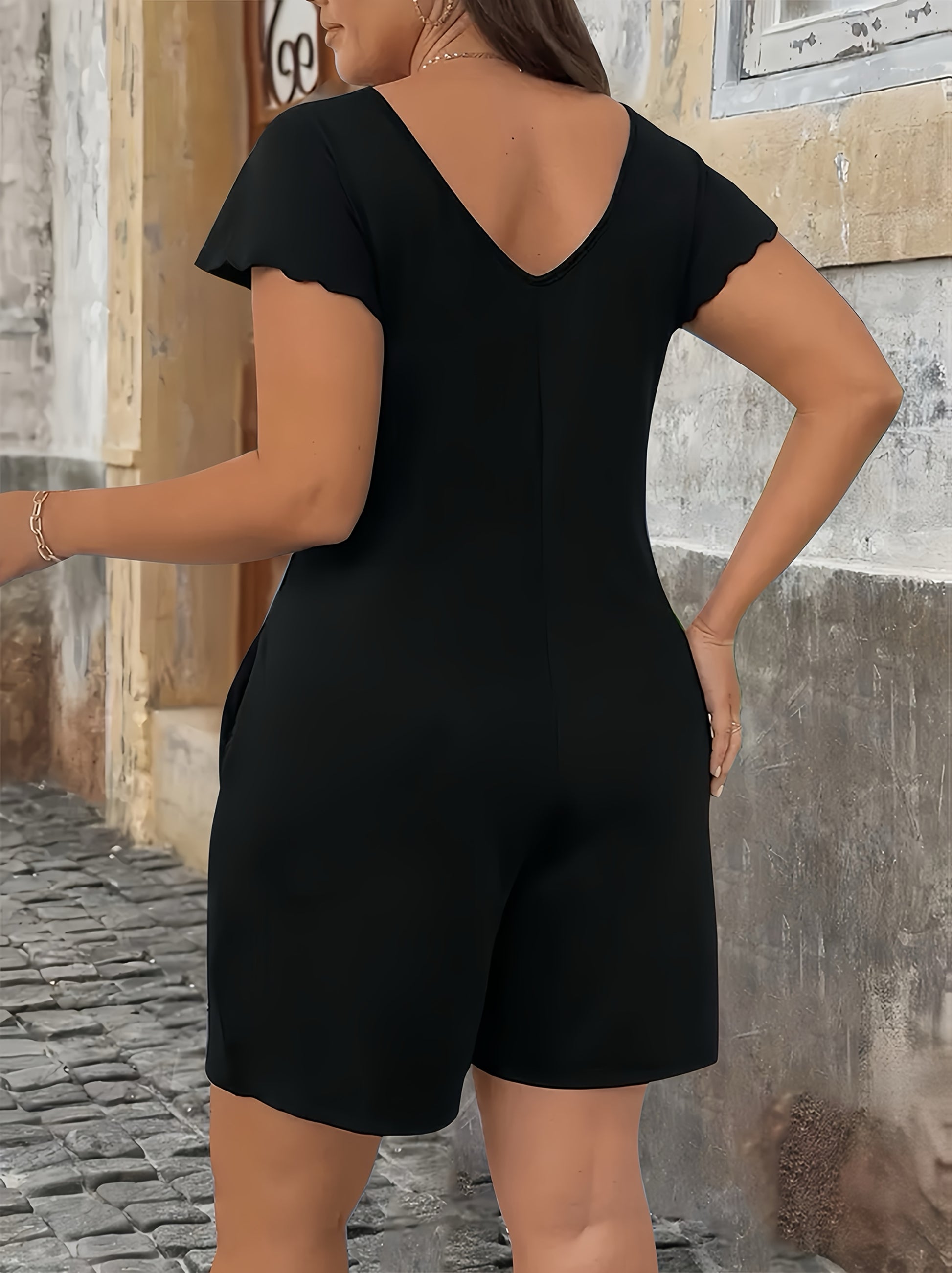 Women's V-Neck Flared Sleeve Solid Color Plus-Size Jumpsuit Shorts