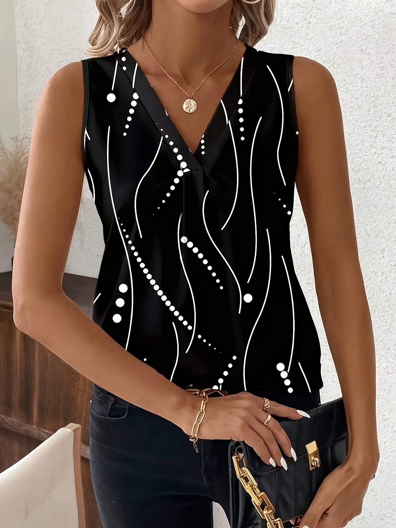 Ayollar uchun V-shaklli bo'yinli, bezsiz, polka nuqta bosma, elastik, mashinada yuviladigan top