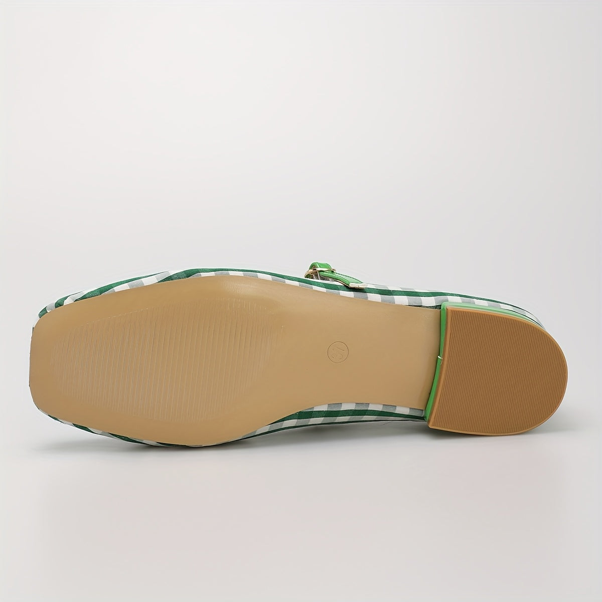 Ayollar uchun vintage tekisli Mary Jane tufli, engil, kundalik, qora va oq gingham