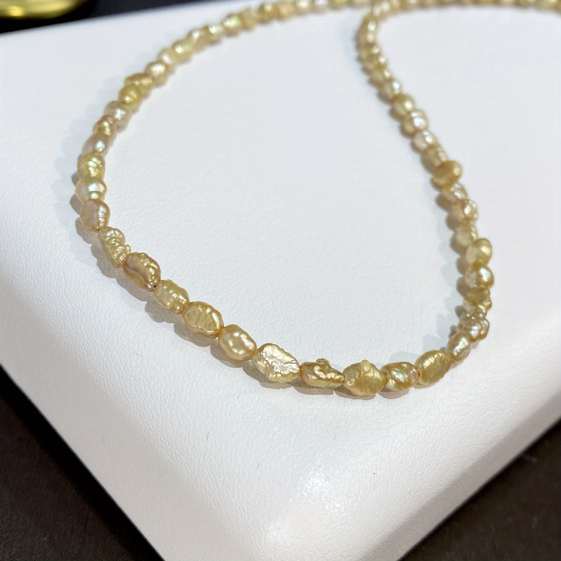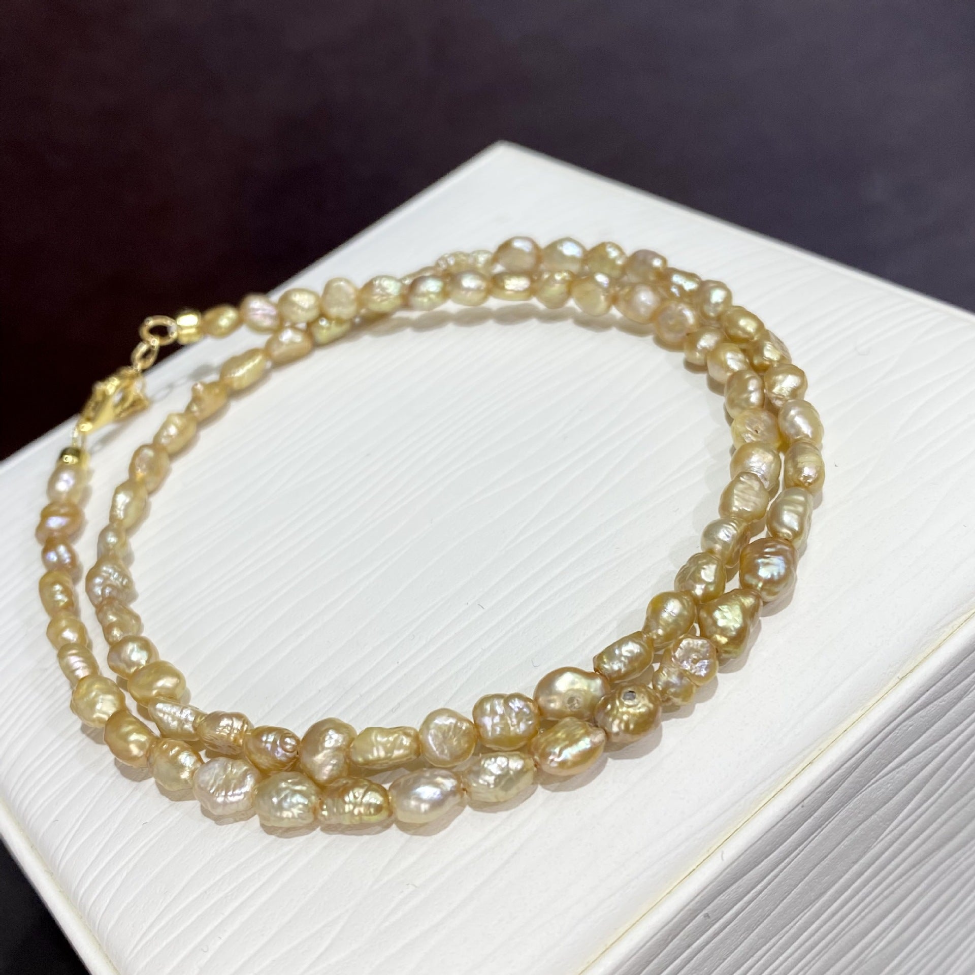 Ayollar uchun vintage uslubidagi tabiiy oltin marvaridli barok marvaridli zanjir, ko'p qatlamli dizaynda, qoplamasiz. Ushbu nafis zanjir har kuni kiyish va maxsus tadbirlar uchun juda mos keladi. Bu Mardi Gras uchun ideal sovg'a.
