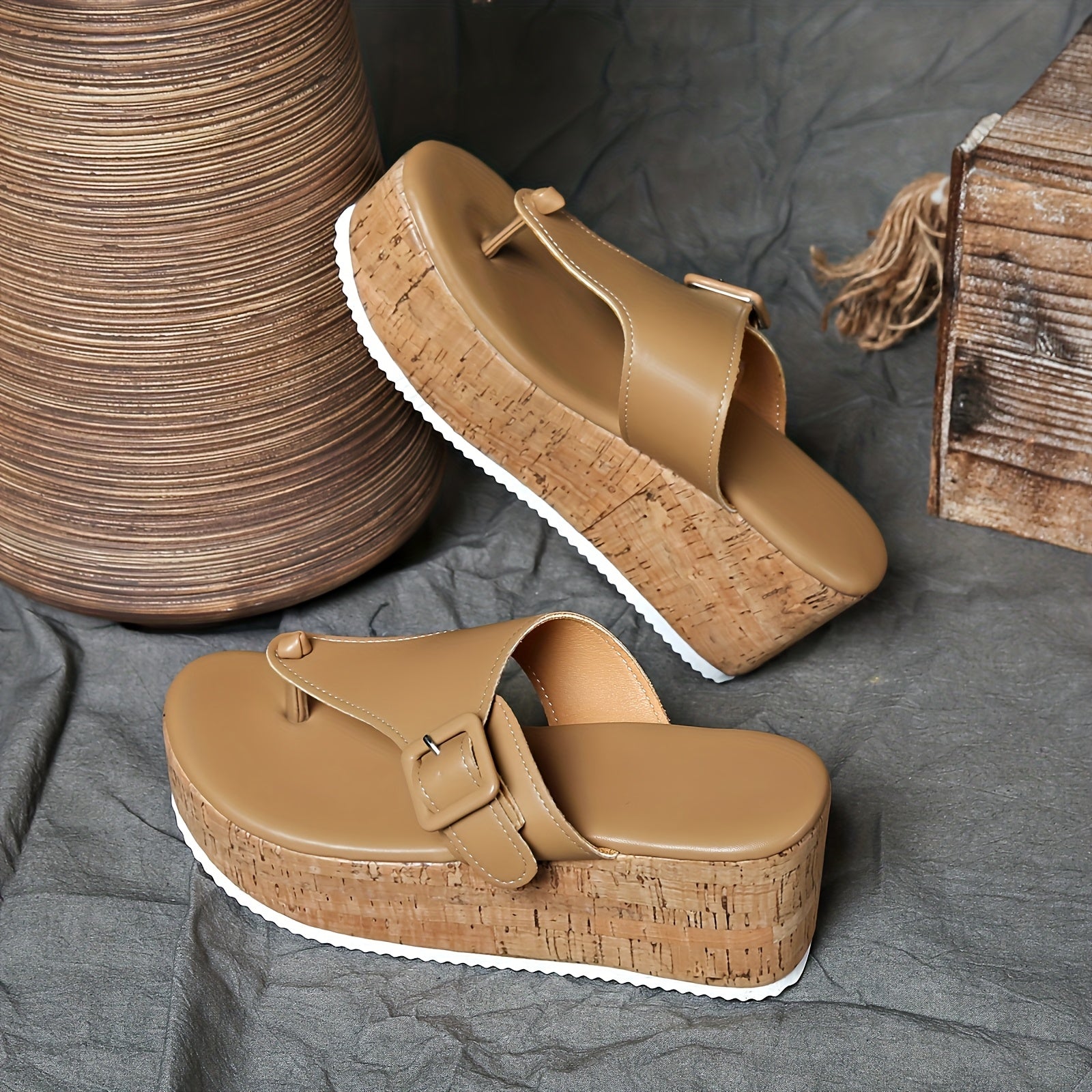 Ayollar uchun vintage uslubidagi platforma sandallar, barcha mavsumlar uchun o'rta balandlikdagi flip-floplar, klipli barmoq, kiyish oson dizayn, qulay sun'iy materiallar va PU taglik.