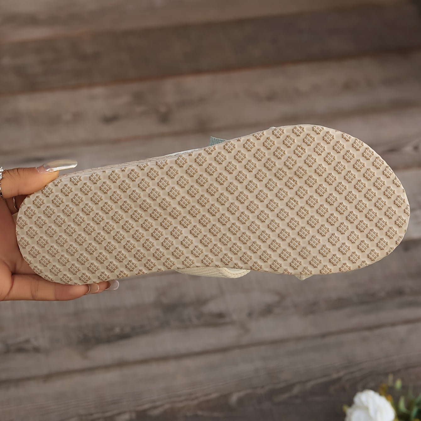 Women's Vintage Style Slide Sandals Breathable Linen Green Flats Summer Casual