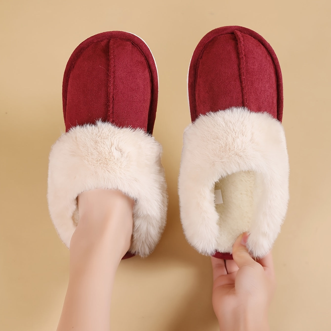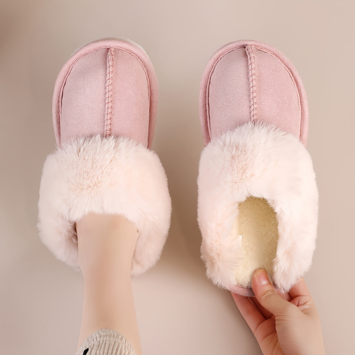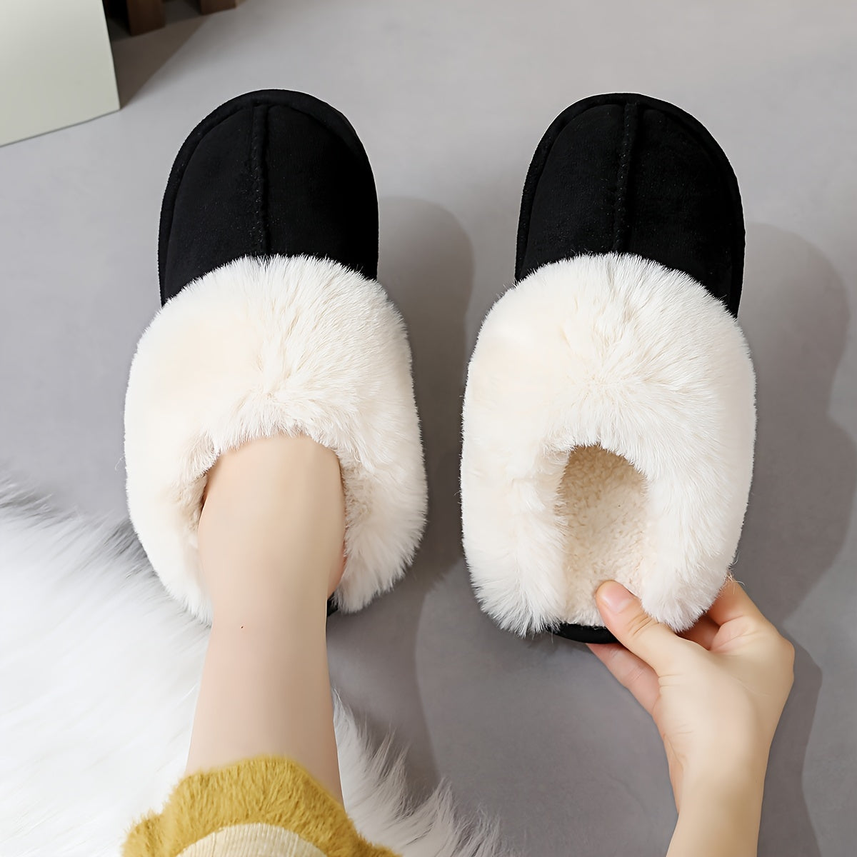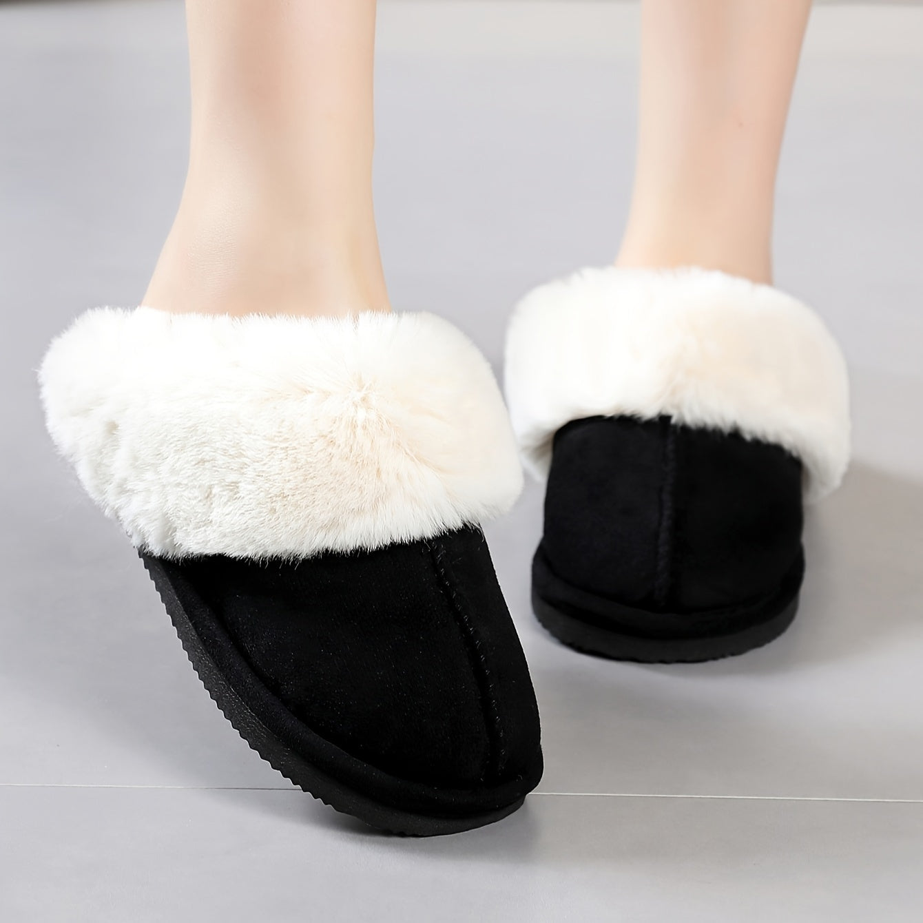 Ayollar uchun issiq plush shlyapka bilan yumshoq tagli ichki mo'ynali poyabzal
