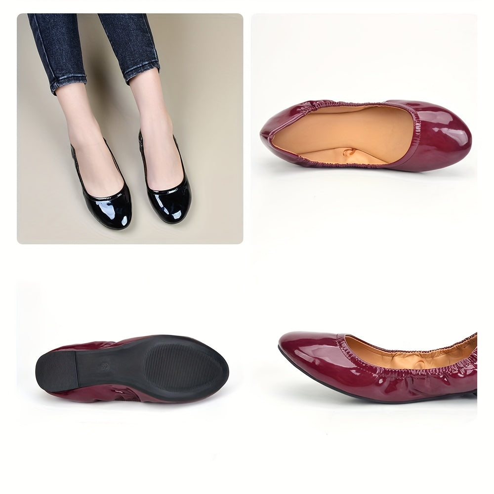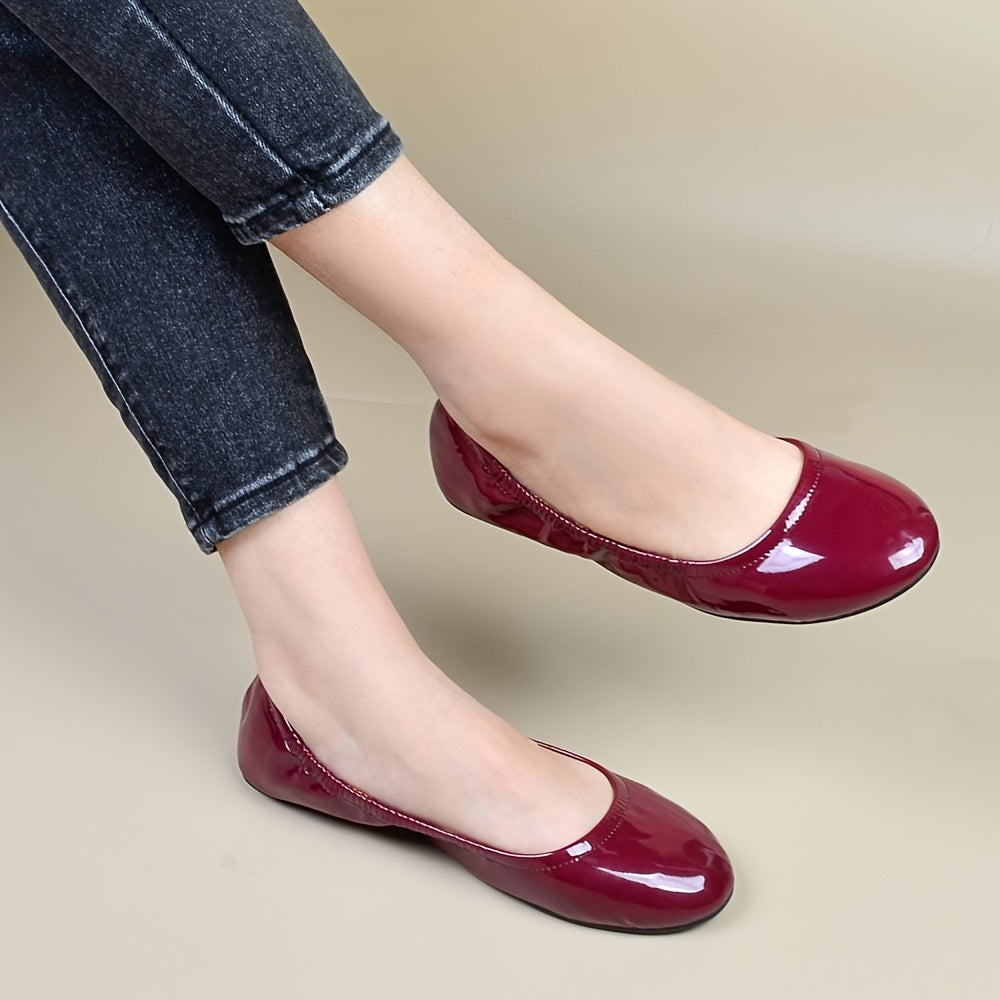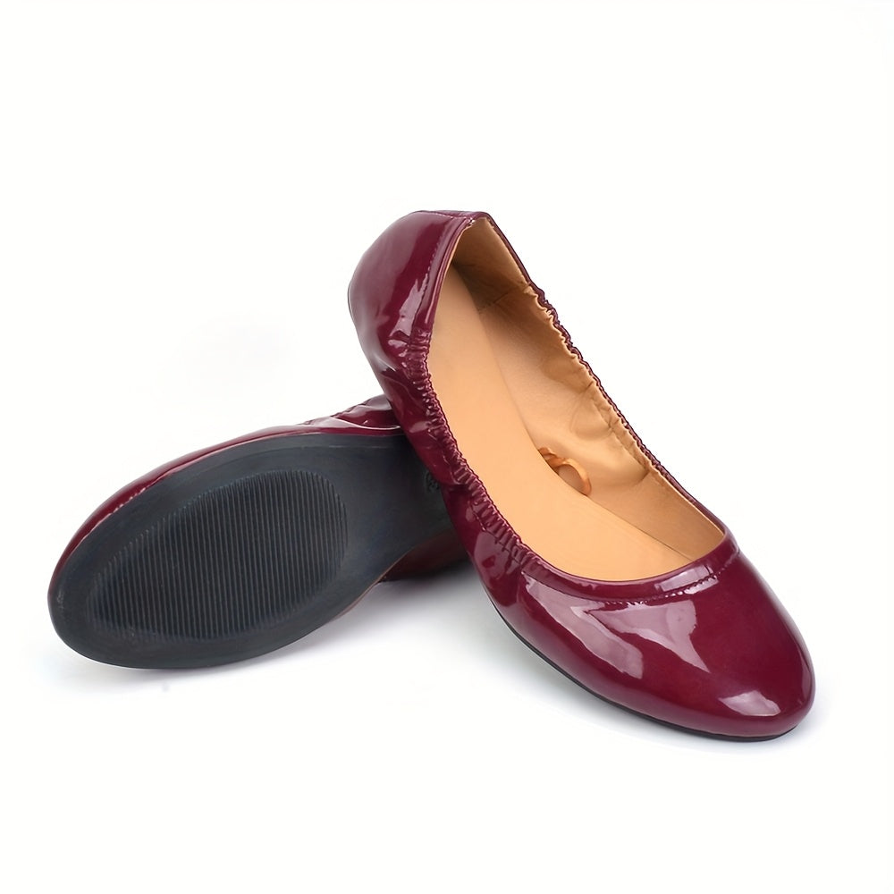 Ayollar uchun keng kenglikdagi Egg Roll tekis poyabzal, vino qizil, kundalik, past top