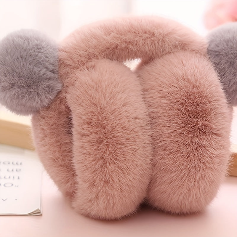 Ayollar uchun qishki ochiq havoda ishlatiladigan, qiziqarli pom-pomli, yumshoq sun'iy mo'yna quloqni isituvchi, mustahkam blok dizaynida.