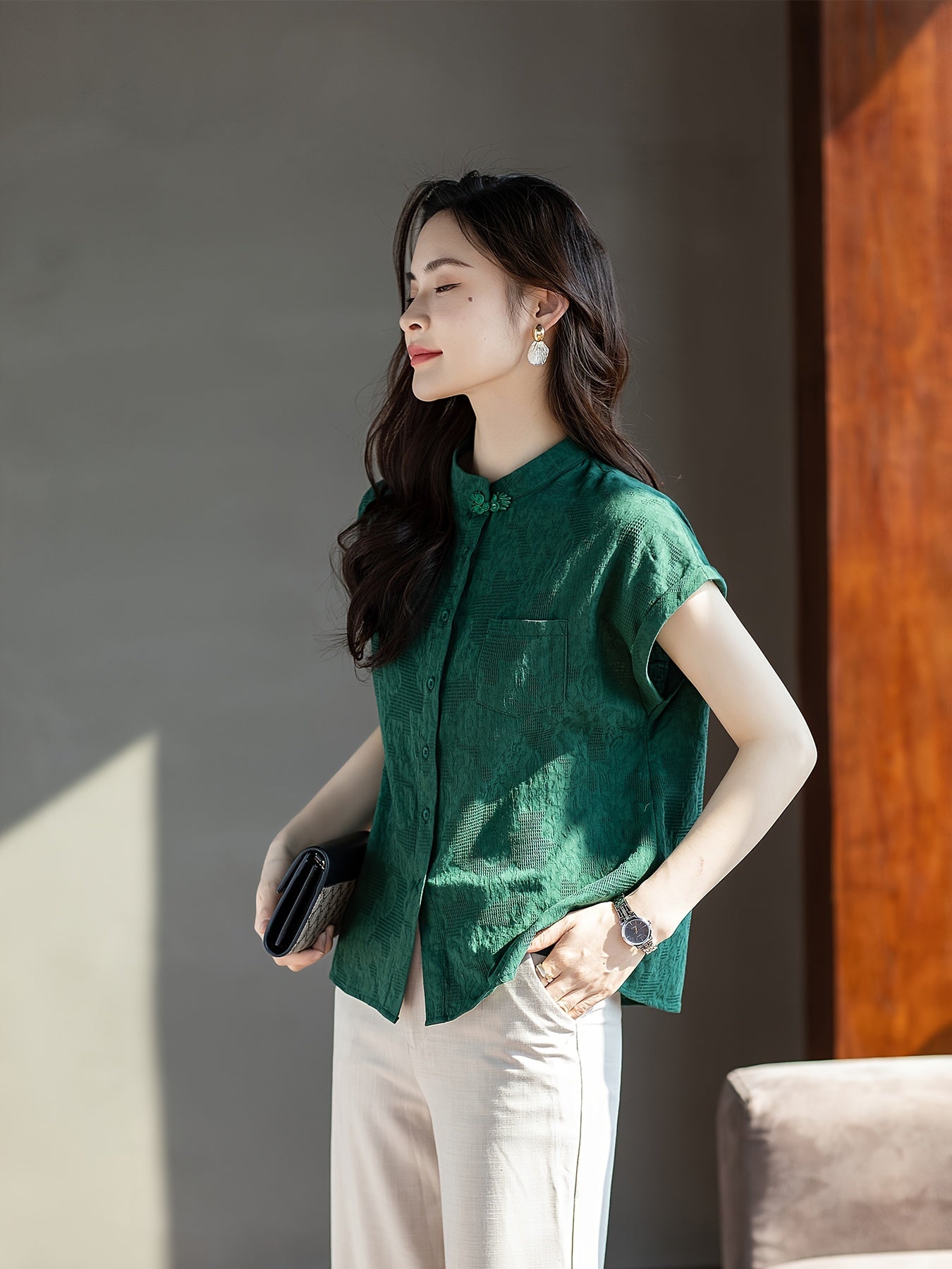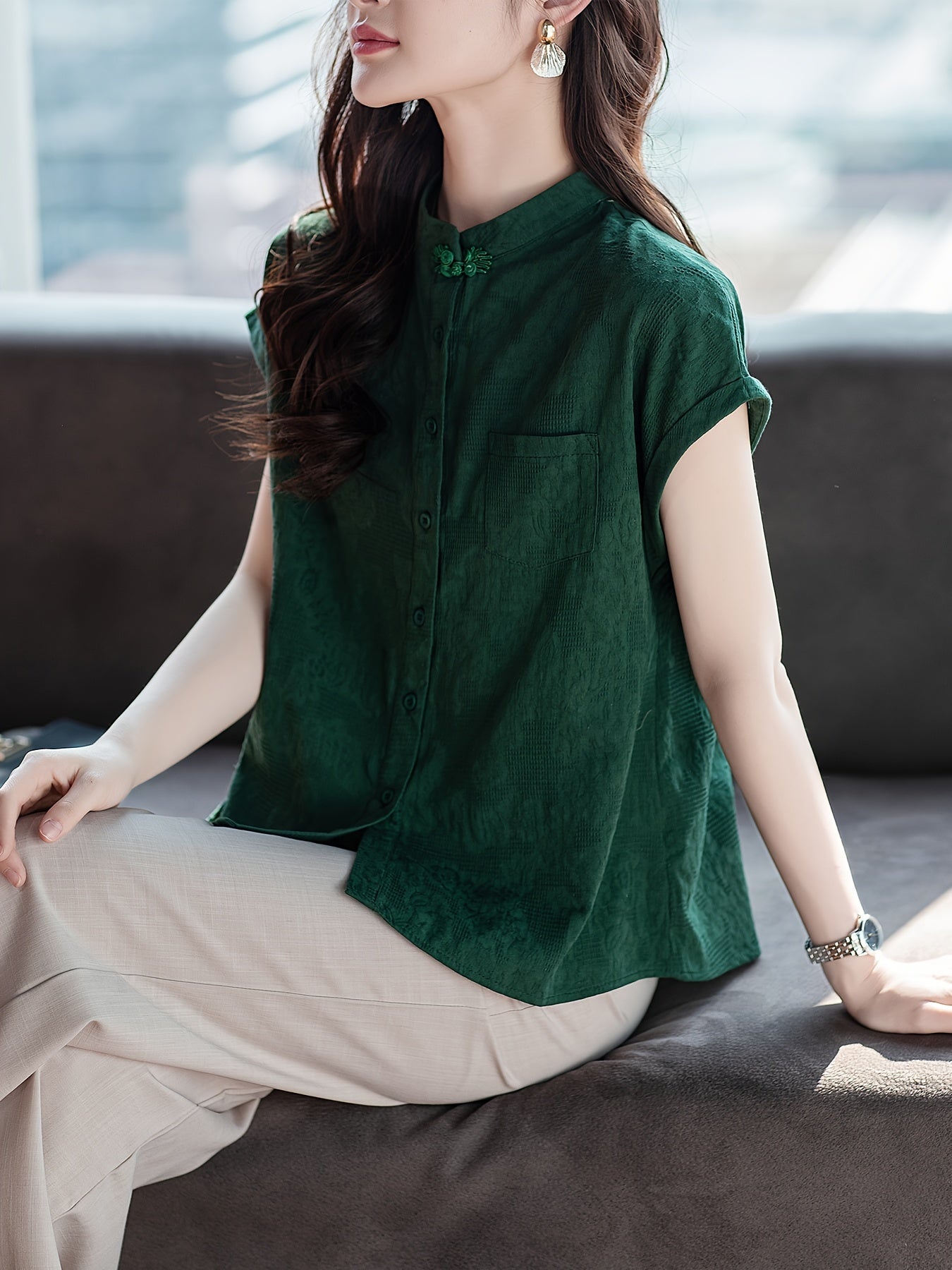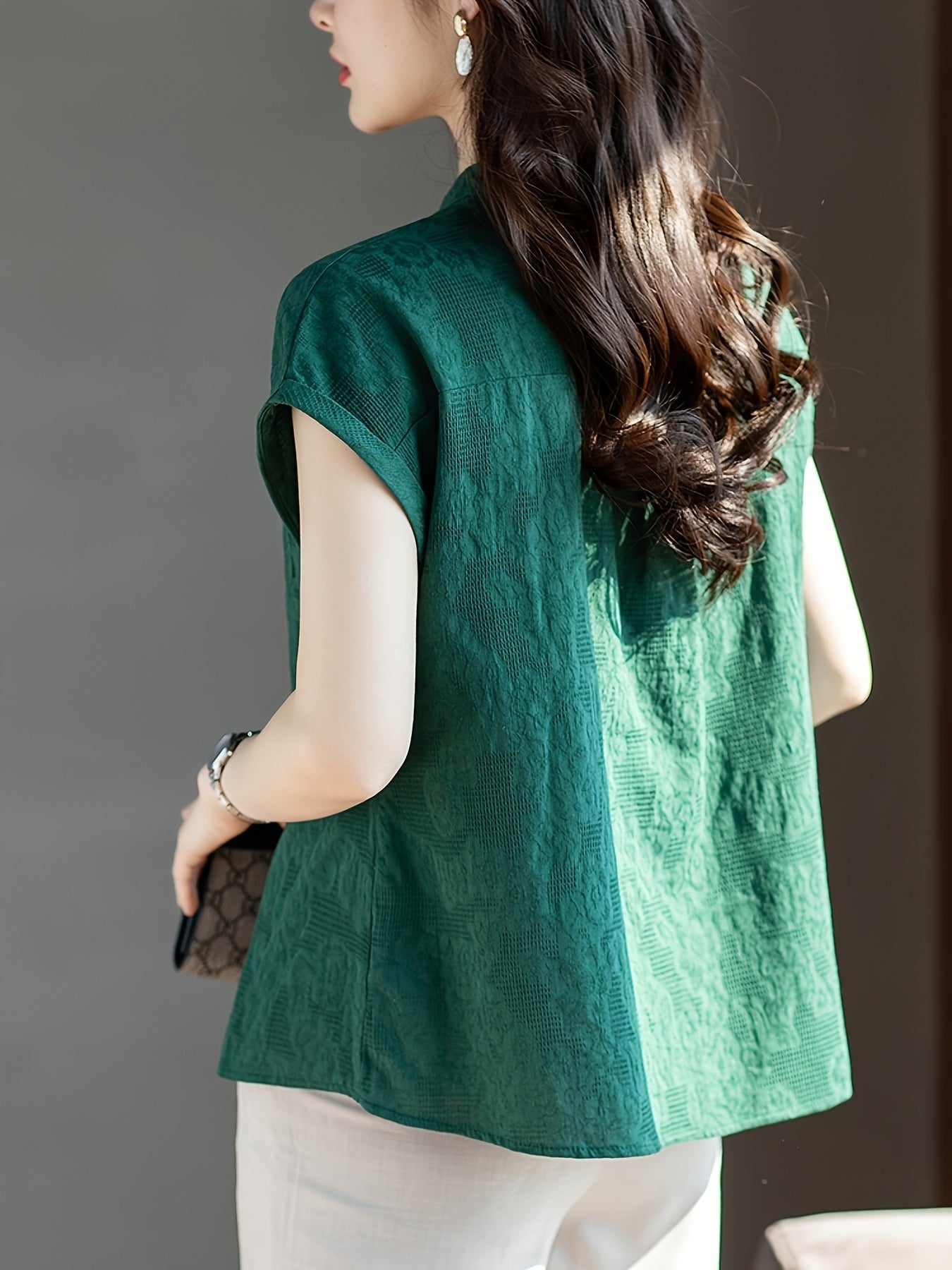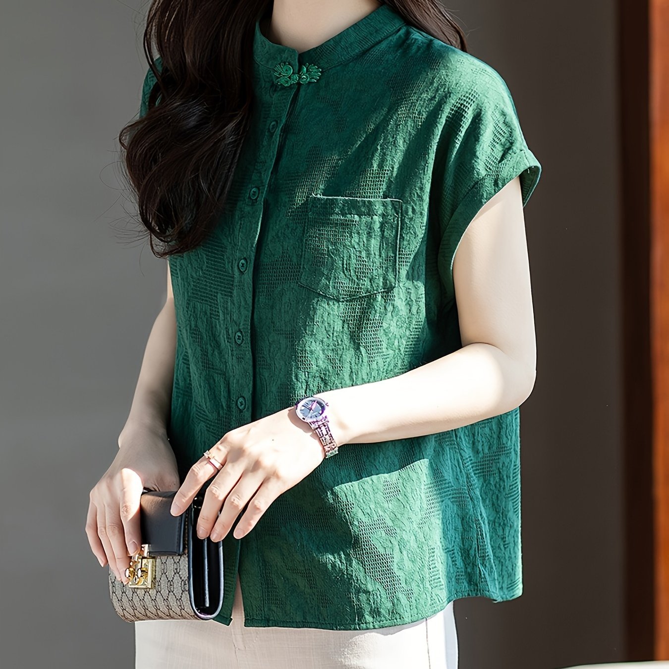 Ayollar uchun qisqa ko'ylakli ko'ylak bilan dizayn, zamonaviy tugma bilan yopiladigan top