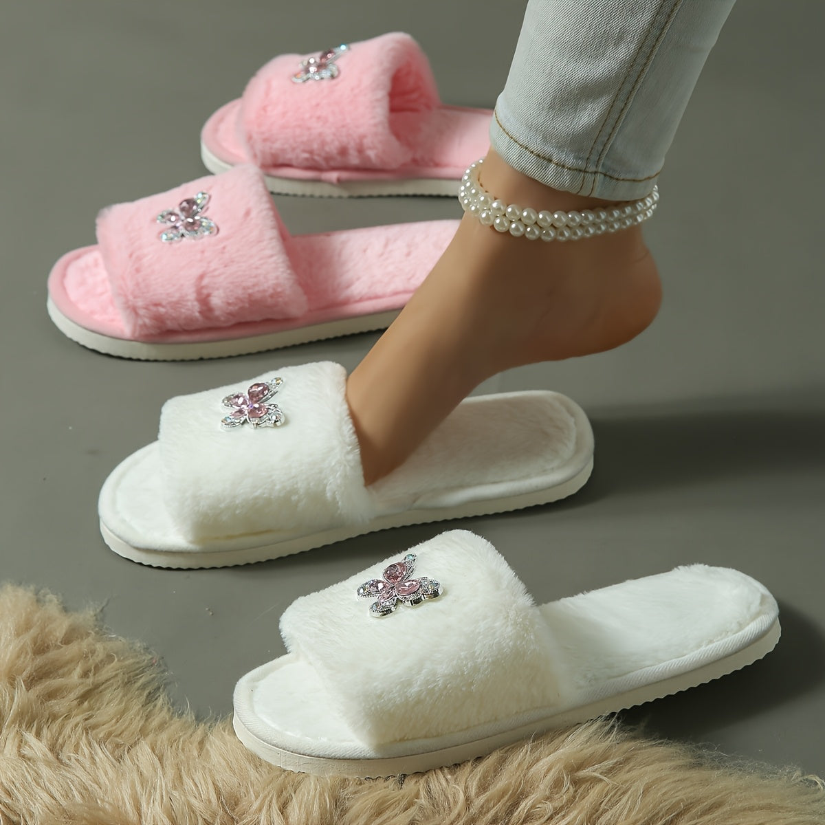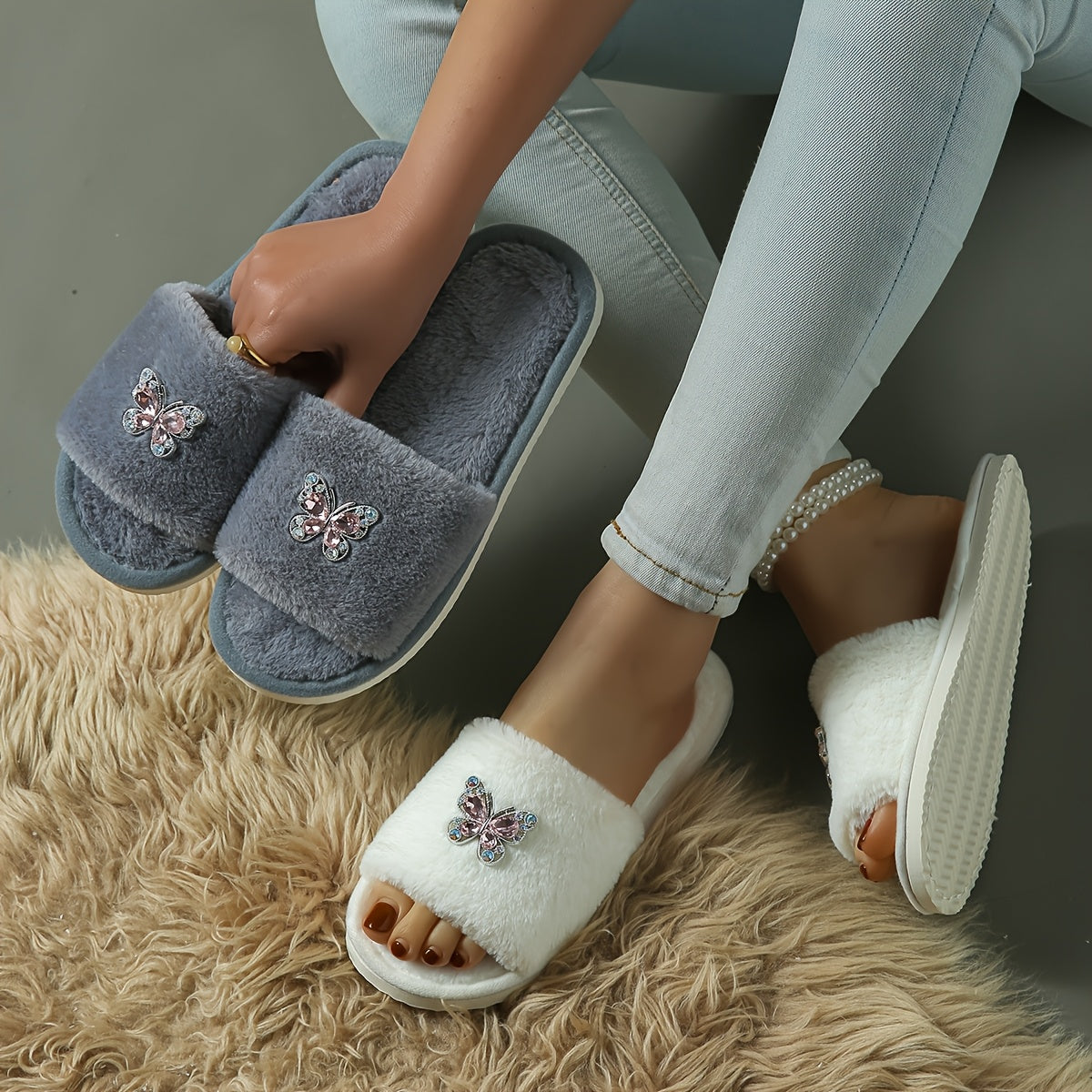 Ayollar uchun kryshalla kelebek bezakli yopiladigan shippaklar, barcha mavsum uchun qulaylik
