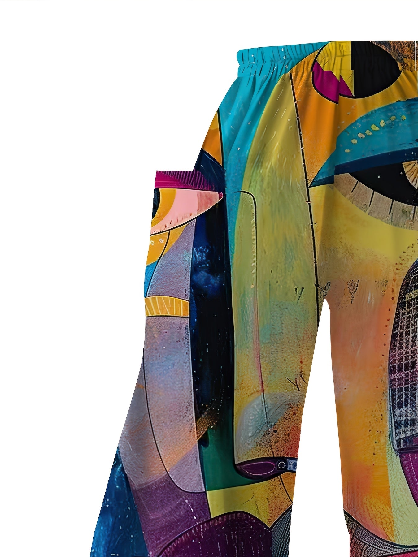 Women Wide Leg Palazzos 3D Print Polyester Casual Pants with Pockets