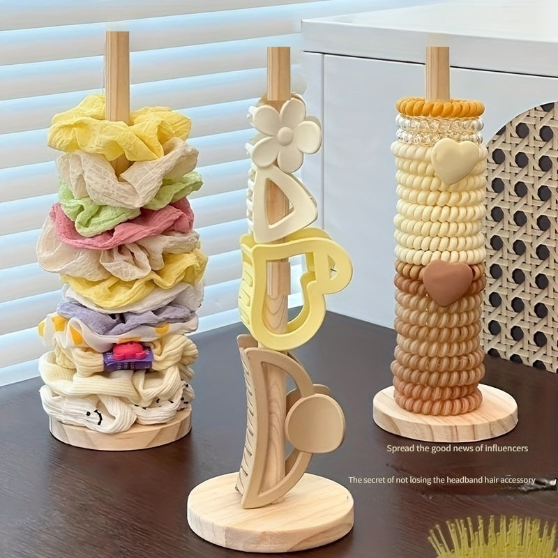 Soch bog'ichlari, kliplari va zargarlik buyumlarini namoyish qilish uchun yog'och soch aksessuarlari tashkilotchisi.