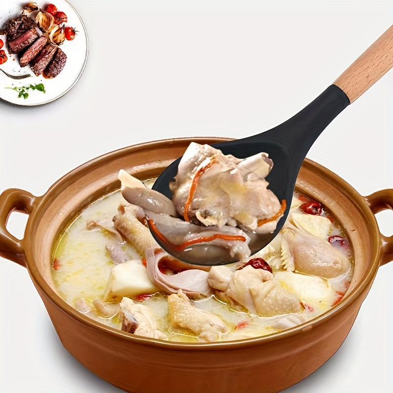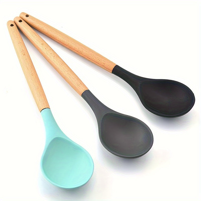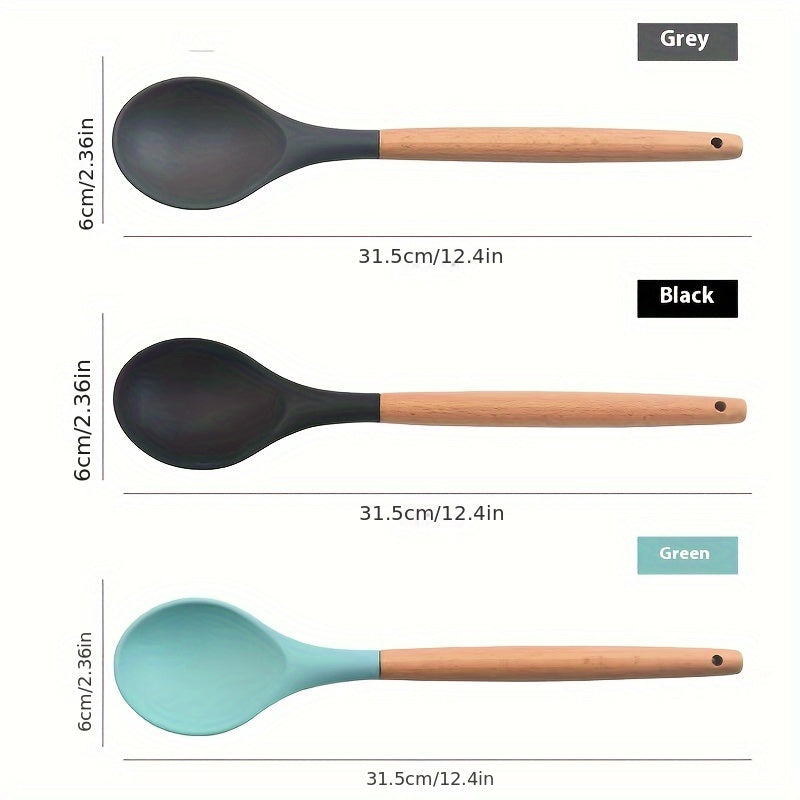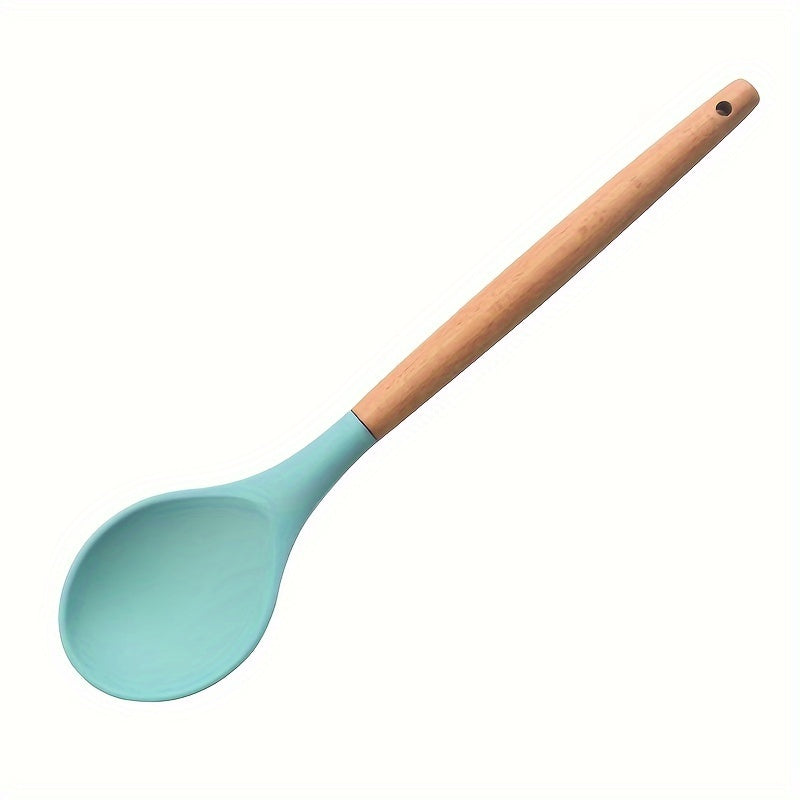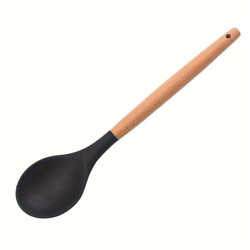 Dreva tutqichli silikon qoshiq - aralashtirish, xizmat ko'rsatish va aralashtirish uchun ko'p maqsadli oshxona asbobi - uzoq muddatli va yuvish uchun oddiy