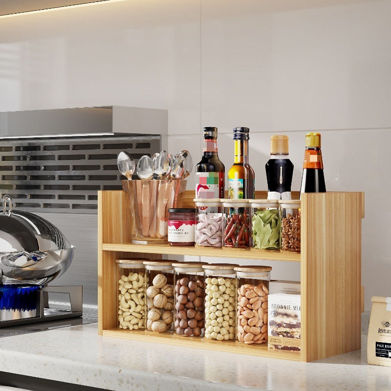 Drevesinli Ko'p Qavatli Ziravorlar Tashkiliy - Ushbu Joyni Tejaydigan Saqlash Yechimi Bilan Oshxona Stolini Tartibda Saqlang, Ziravorlar, Yog'lar va Sirka Uchun