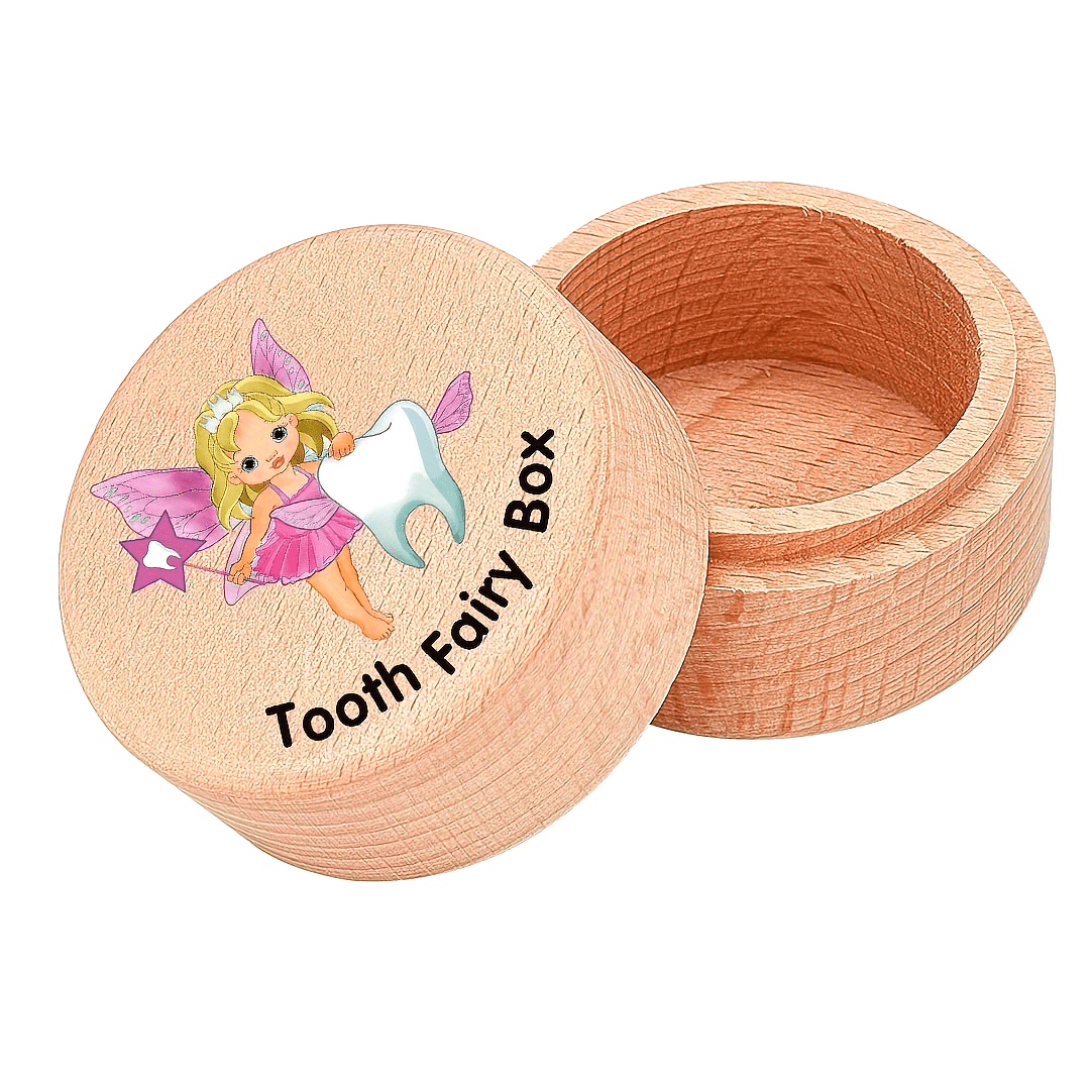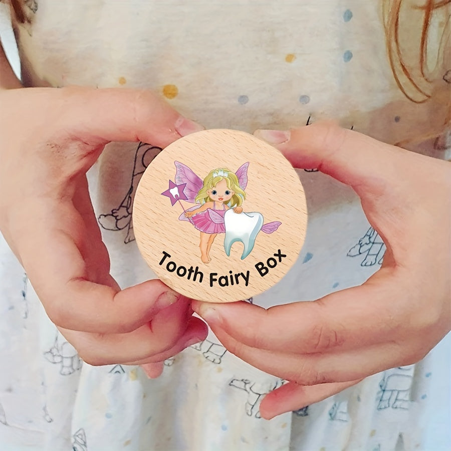 Qizlar uchun Yog'och Tish Perisi Qutisi - Yo'qolgan tishlarni saqlash uchun mukammal, Qiziqarli xotira saqlagich, Bolalar uchun tish tashkilotchisi - Dumaloq xotira to'plovchi quti