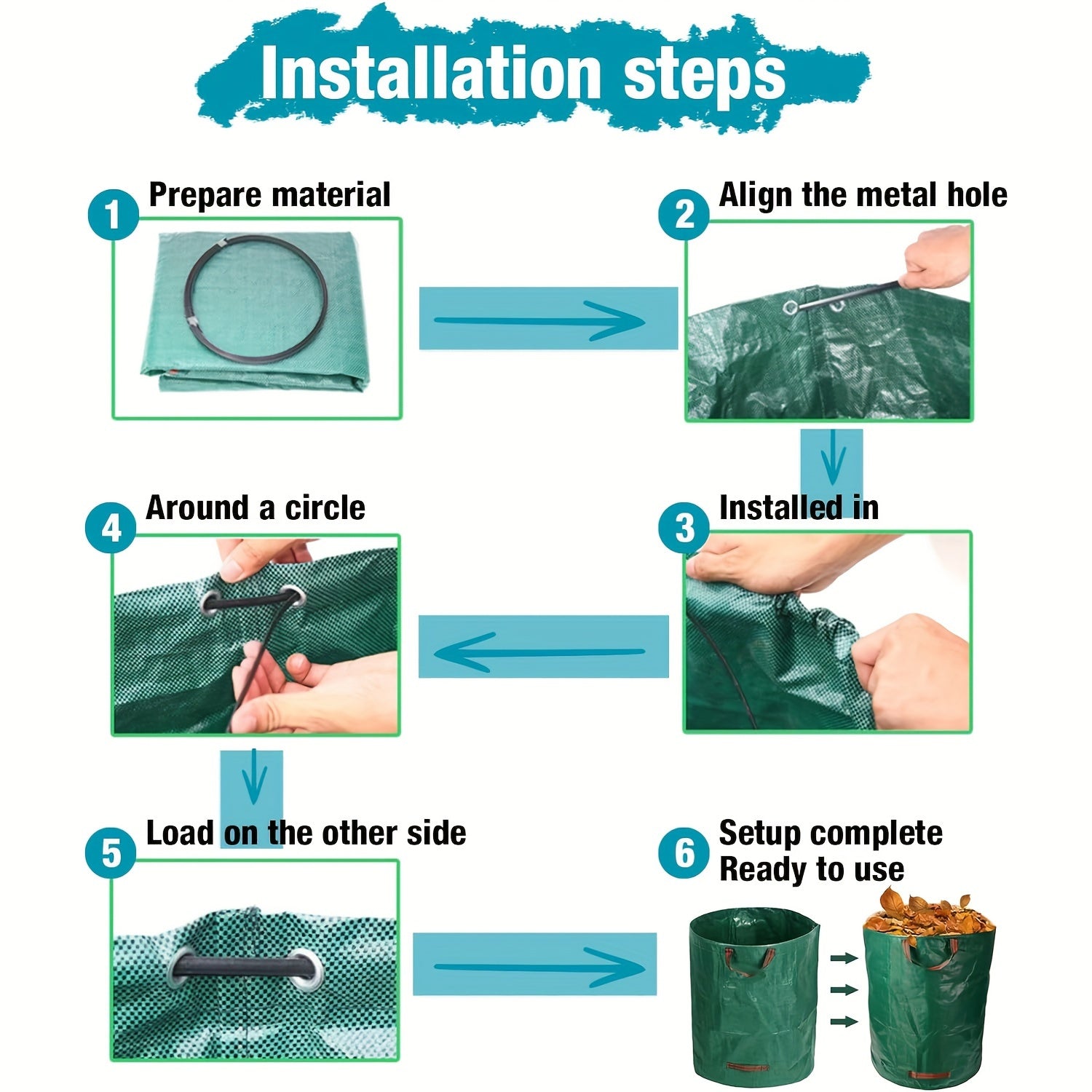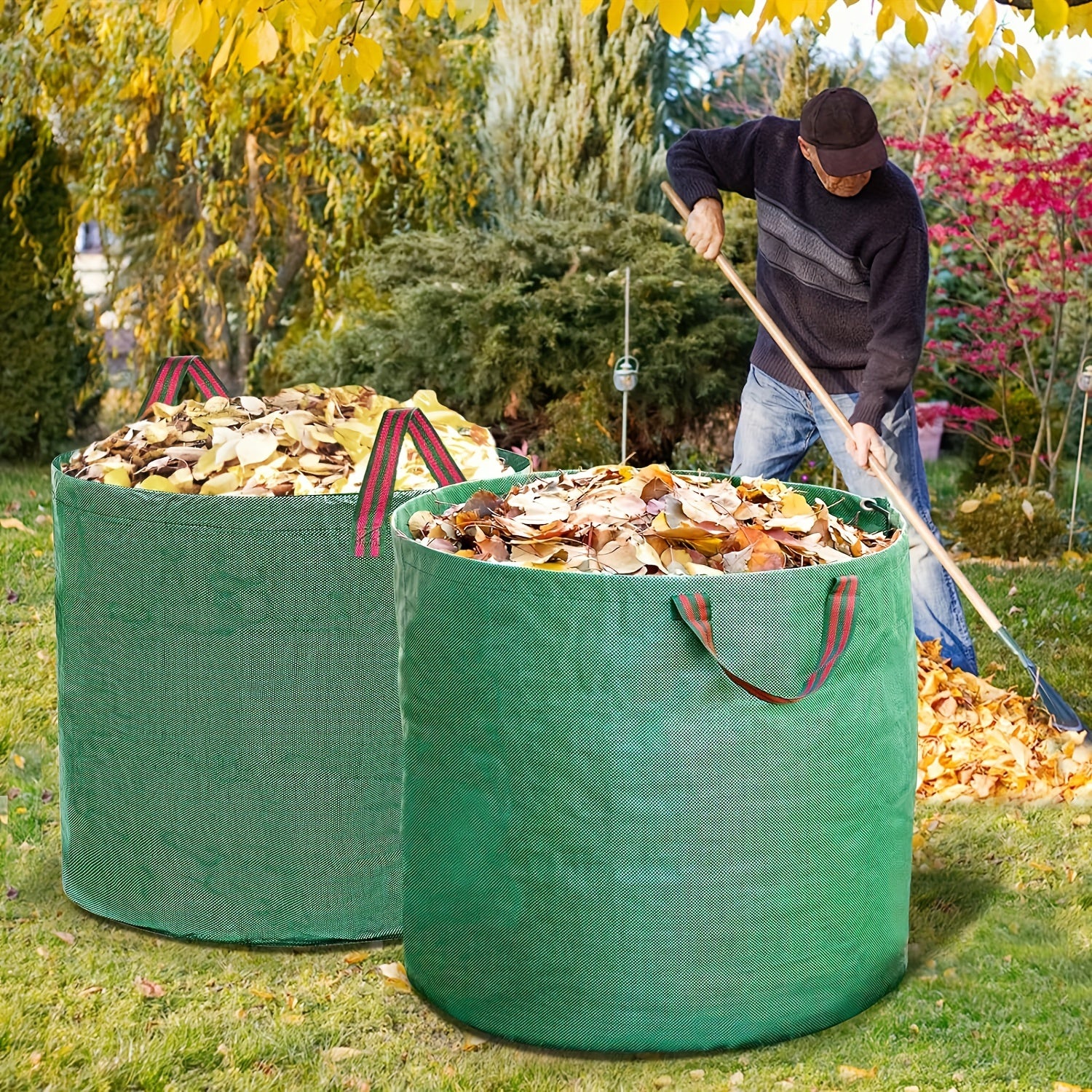 XL Og'ir yuk ko'taruvchi bog' chiqindilari sumkalari tutqichlar bilan - Qayta ishlatiladigan, suv o'tkazmaydigan - Barglar va o'tlar uchun ideal - 500L/272L/120L o'lchamlari