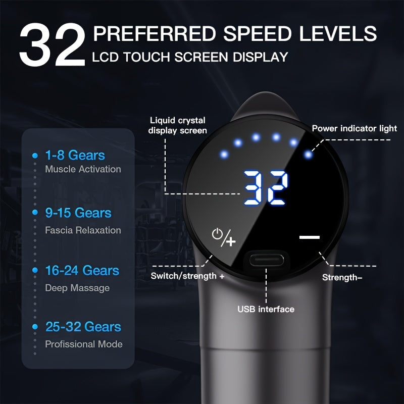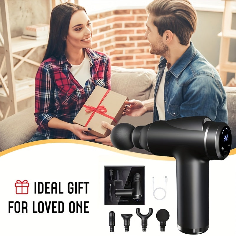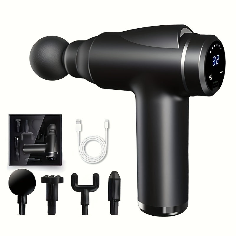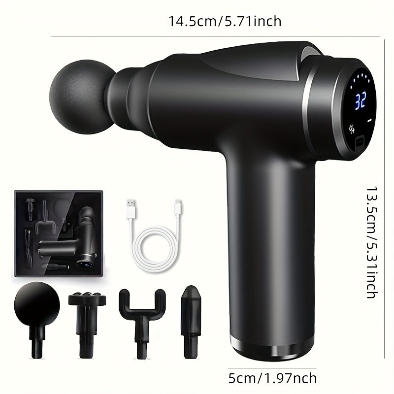 XUMTOM Yuqori Intensiv Chuqur To'qima Mushak Massaj Qurollari 4 Ta O'zgaruvchan Boshli - Portativ, Qayta Zaryadlanadigan Perkussiya Massajeri - Sport, Mashg'ulotlar va Qayta tiklanish uchun Ideal - Qora