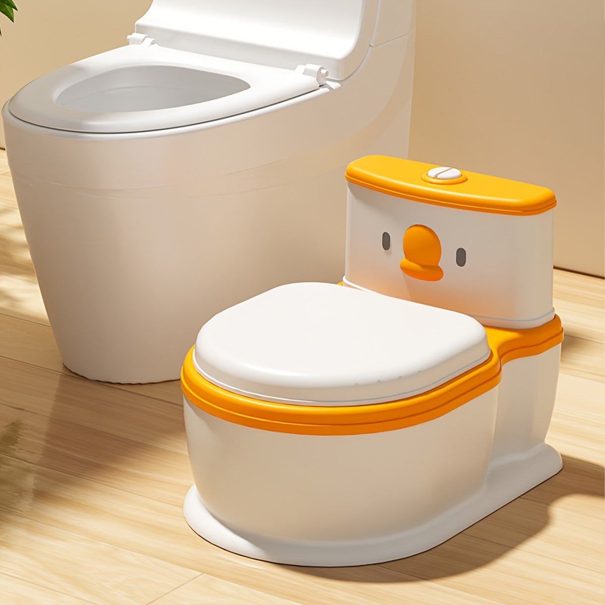 "Bolalar uchun sariq o'rdak dizayni potty stuli, mustahkam PP materialidan tayyorlangan, qopqoq bilan o'qitish hojatxonasi o'rindig'ini o'z ichiga oladi, 3-6 yoshdagi bolalar uchun mos, potty o'qitish uchun hammom o'rindig'i."