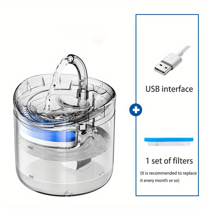 Mushuklar uchun 1.8L Suvli Koshik, Jim pompali, USB bilan qayta zaryadlanadigan, ichki foydalanish uchun