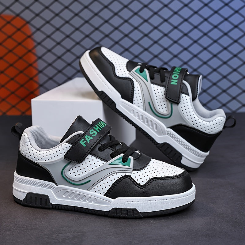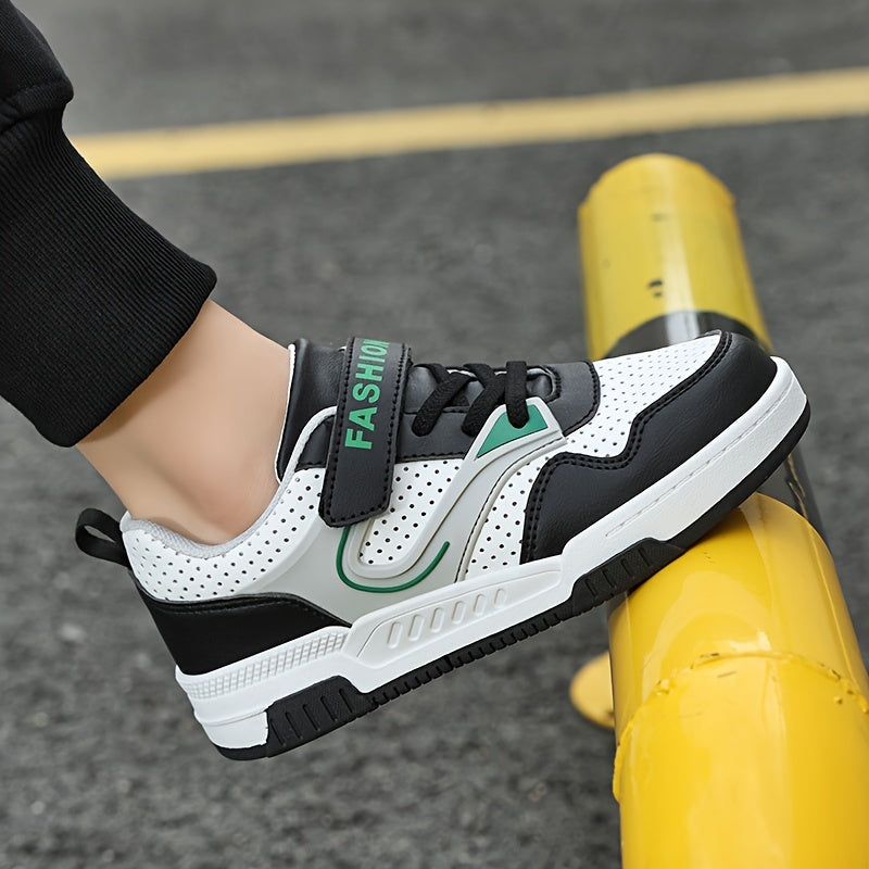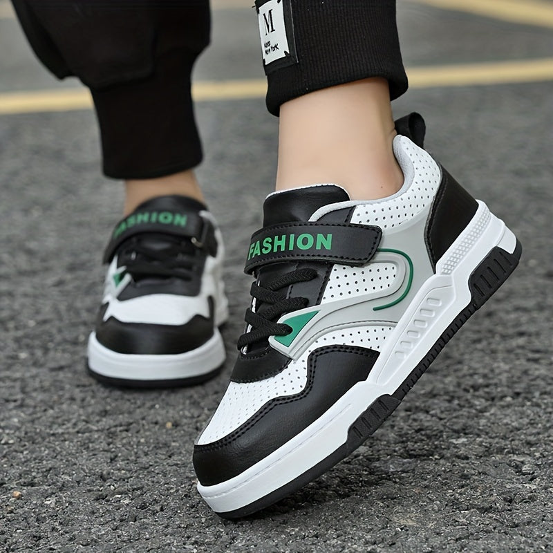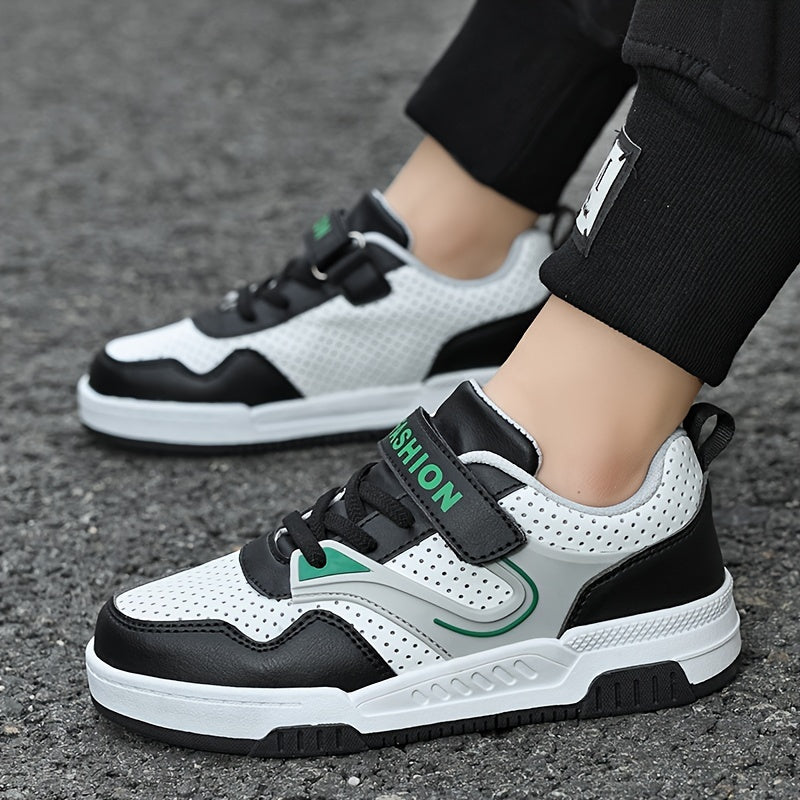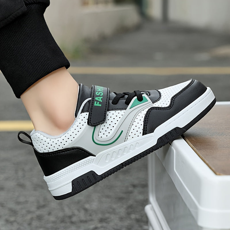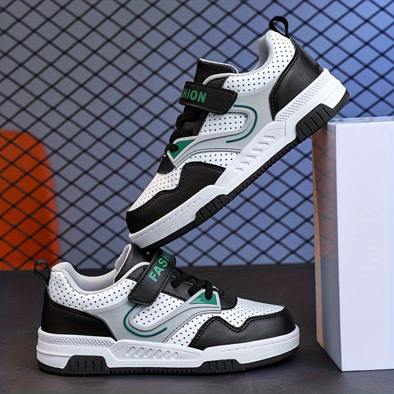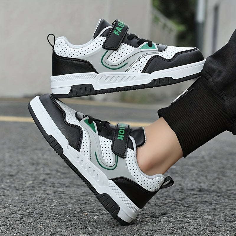 Yoshlar uchun pastki krossovkalar, yopiq va ochiq yopishqoq, nafas oladigan teshikli barmoq qutisi, qora/oq/yashil ranglar, ushlash va chidamlilik uchun TPR taglik, yumshoq mato astar, yugurish uchun ideal.