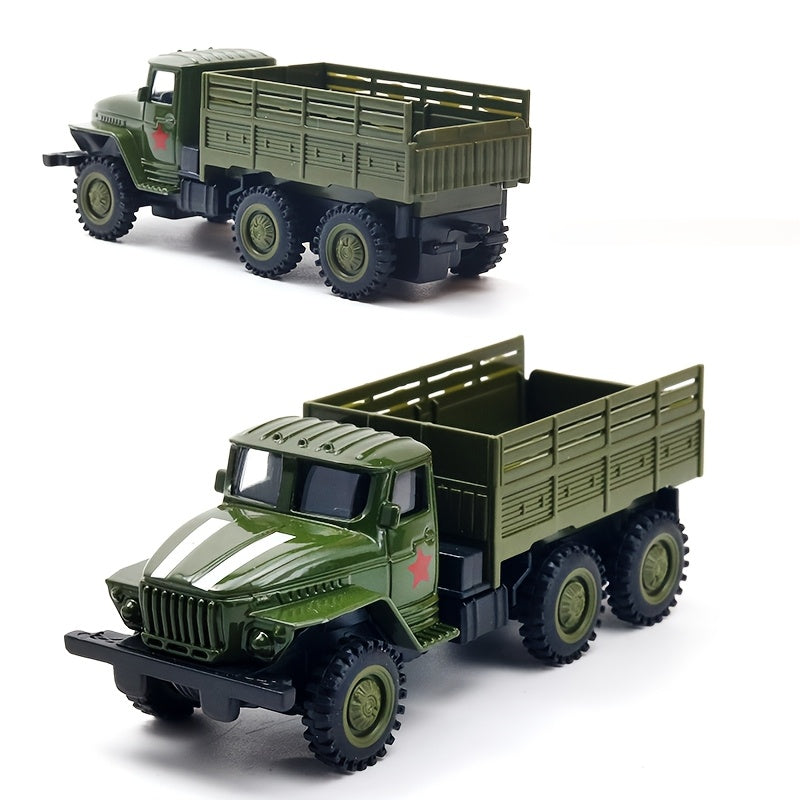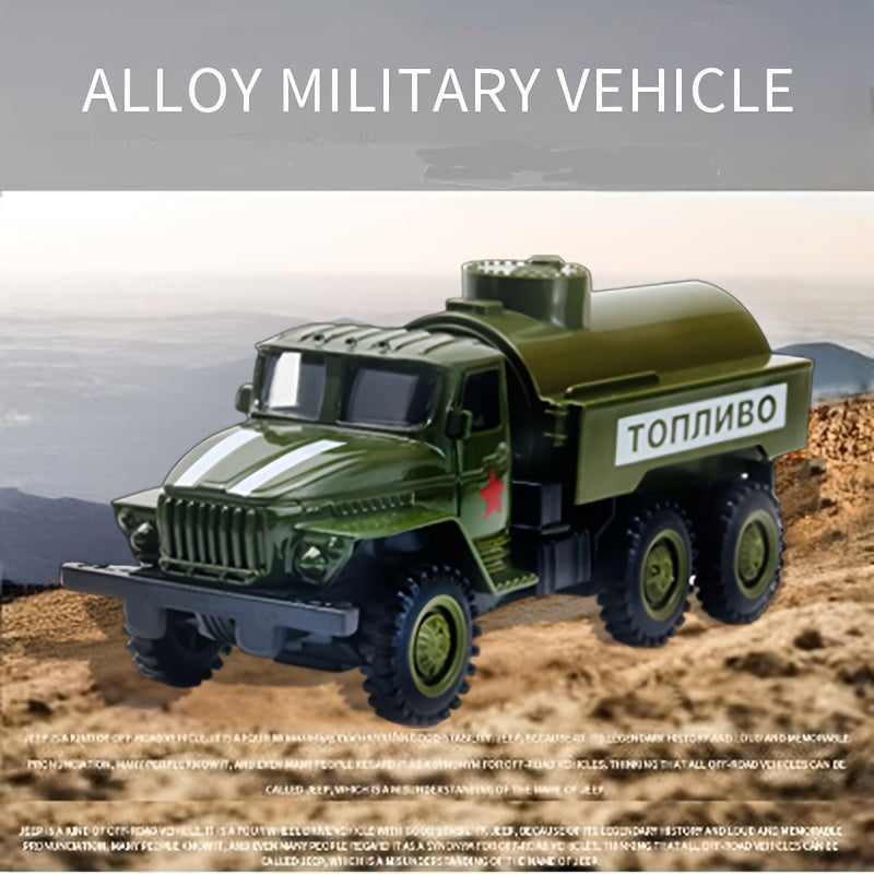 Zinс qotishmasidan yasalgan harbiy yuk mashinasi replikasi, qo'lda tortish operatsiyasi bilan, tortlarni bezash, avtomobil bezaklari, uy va ofis stolida ornament sifatida va kollektsionerlar va harbiy bezaklar uchun sovg'a sifatida ideal.