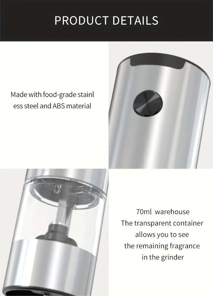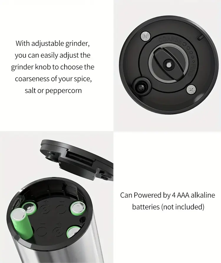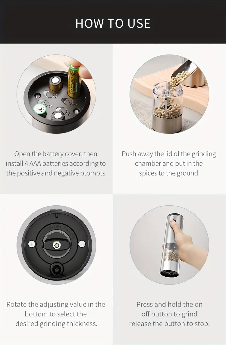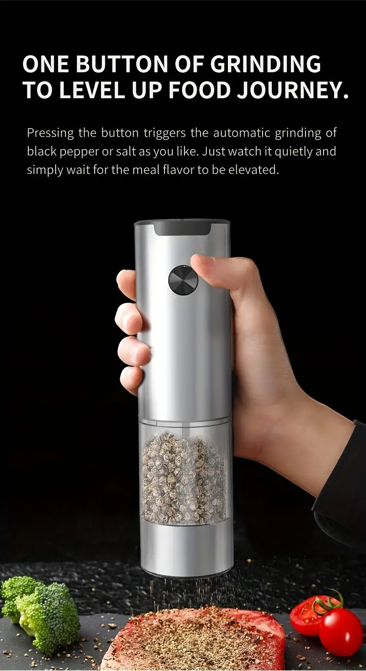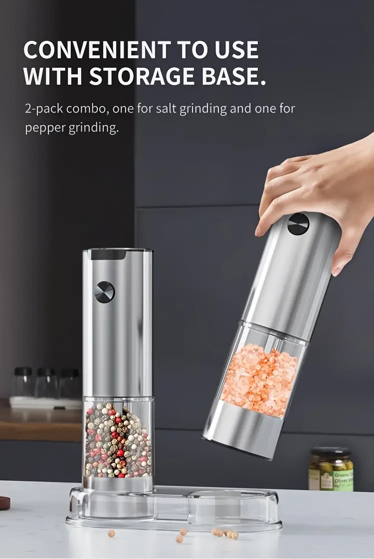 Набор электрических мельниц для перца 1/2 шт. с нержавеющей сталью, автоматическая мельница для соли и перца, прозрачная камера для специй, работает на батарейках (батарейки AAA), не перезаряжаемые, необходимый кухонный аксессуар