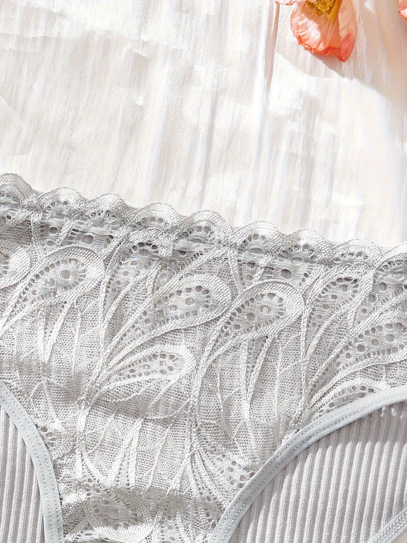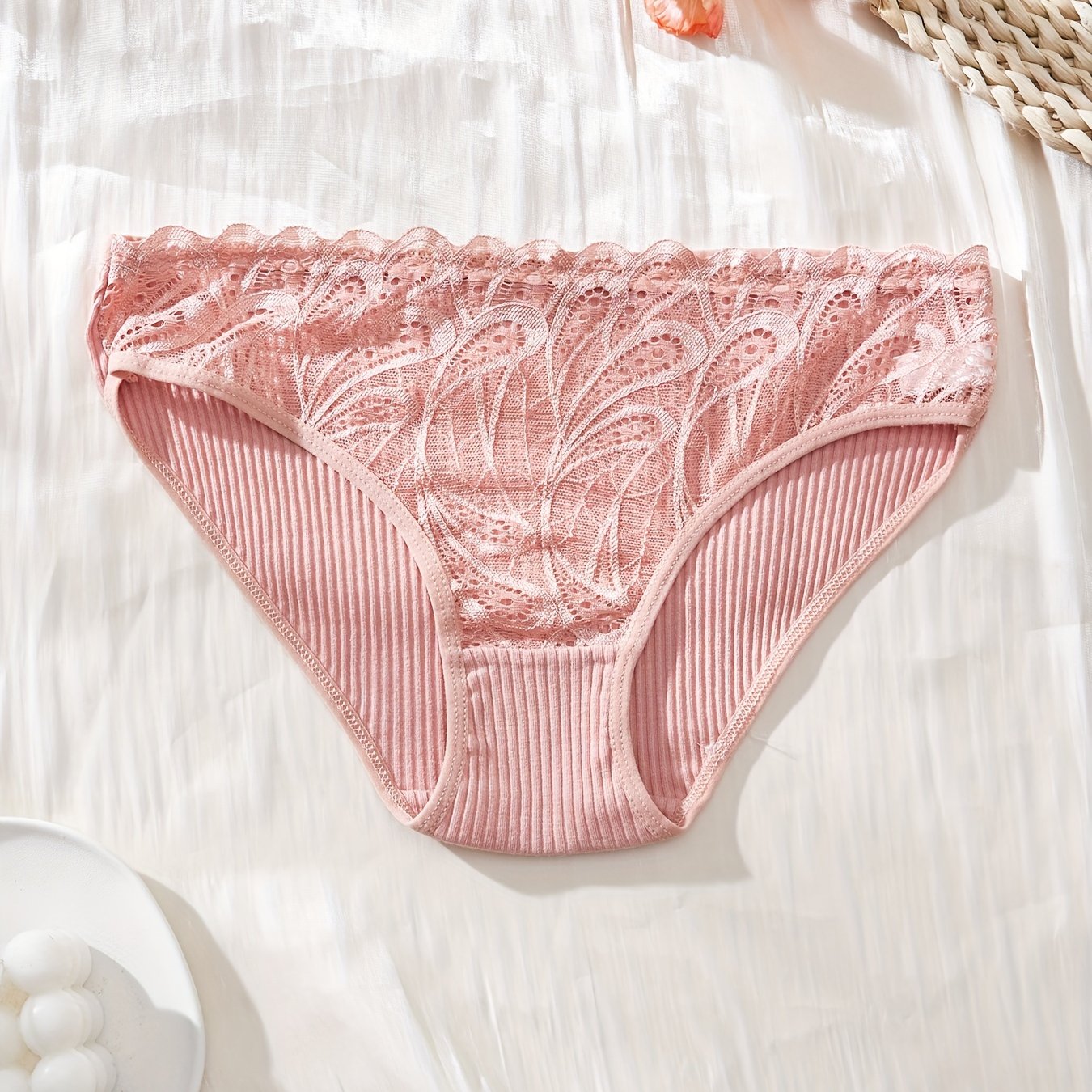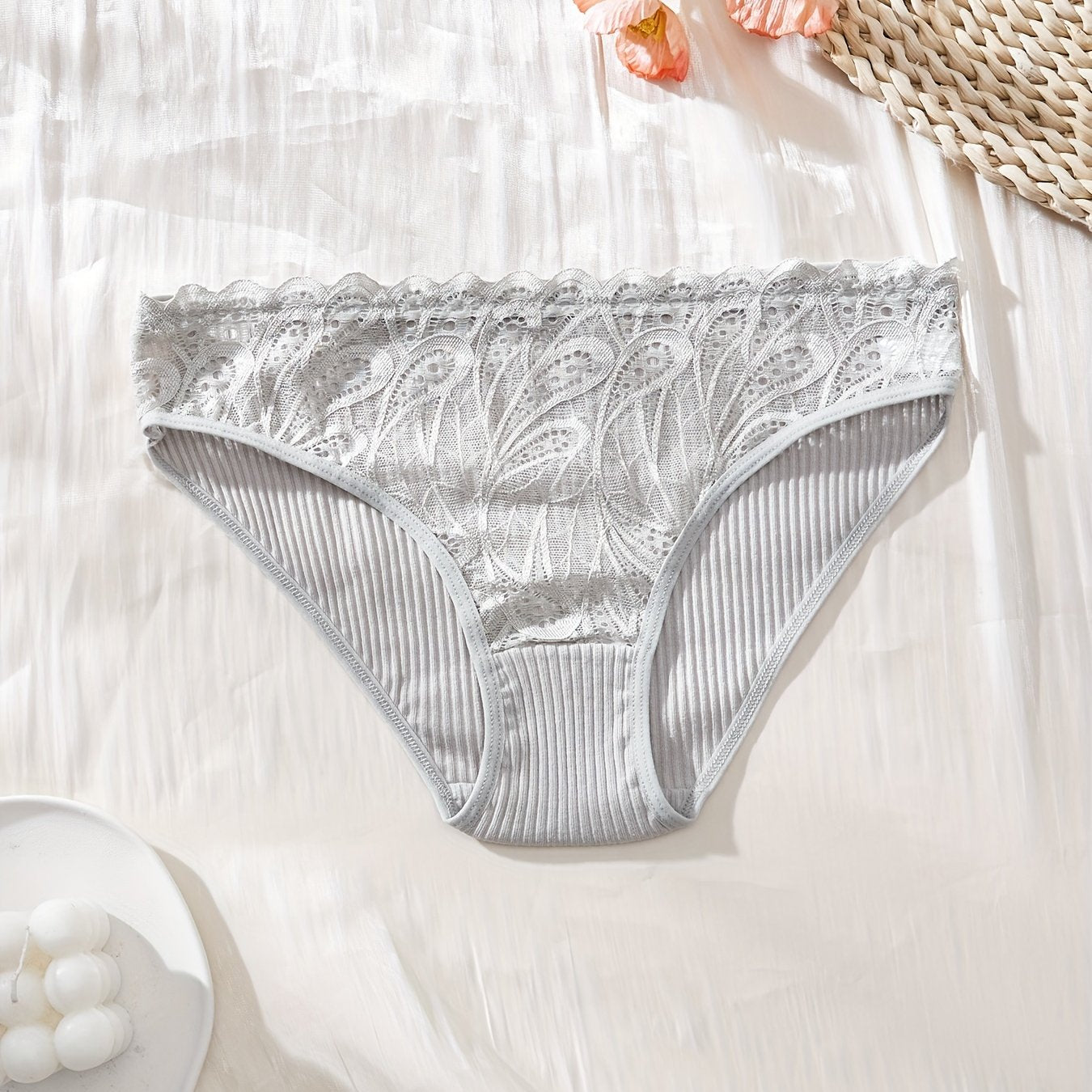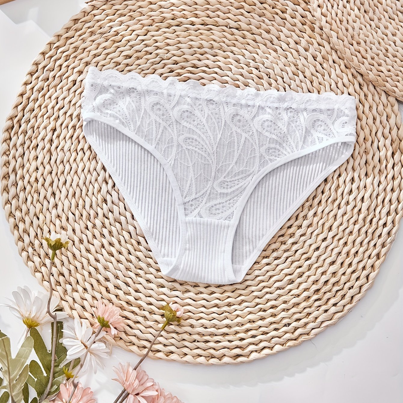 1 Элегантные хлопковые трусики с кружевной отделкой для женщин, дышащее трикотажное нижнее белье, удобное и стильное, взрослое - 1 упаковка