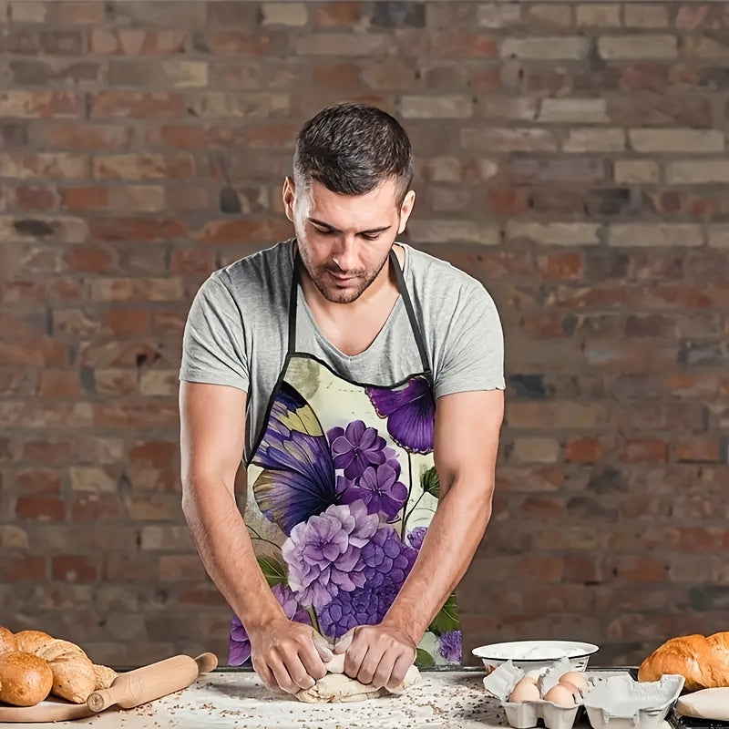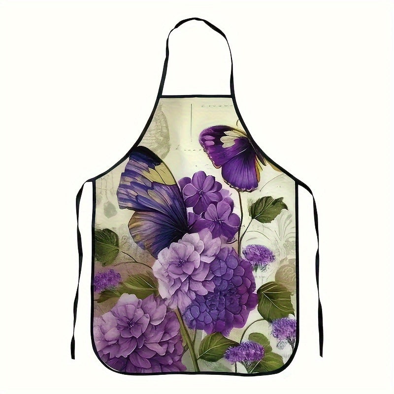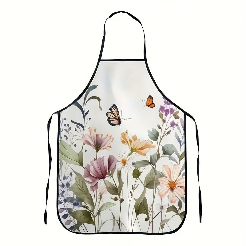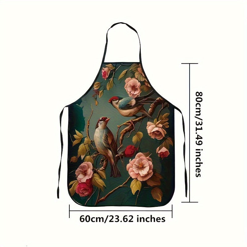1 фартук с цветочным и птичьим принтом, изготовленный из 100% полиэстера, с регулируемым воротником для готовки и домашних дел