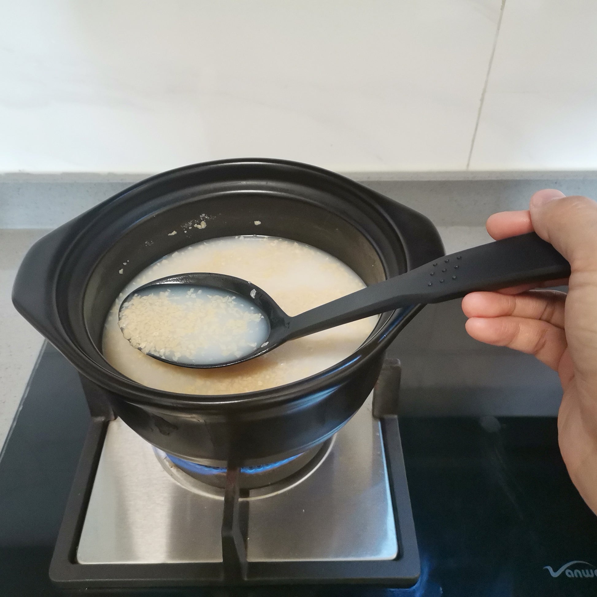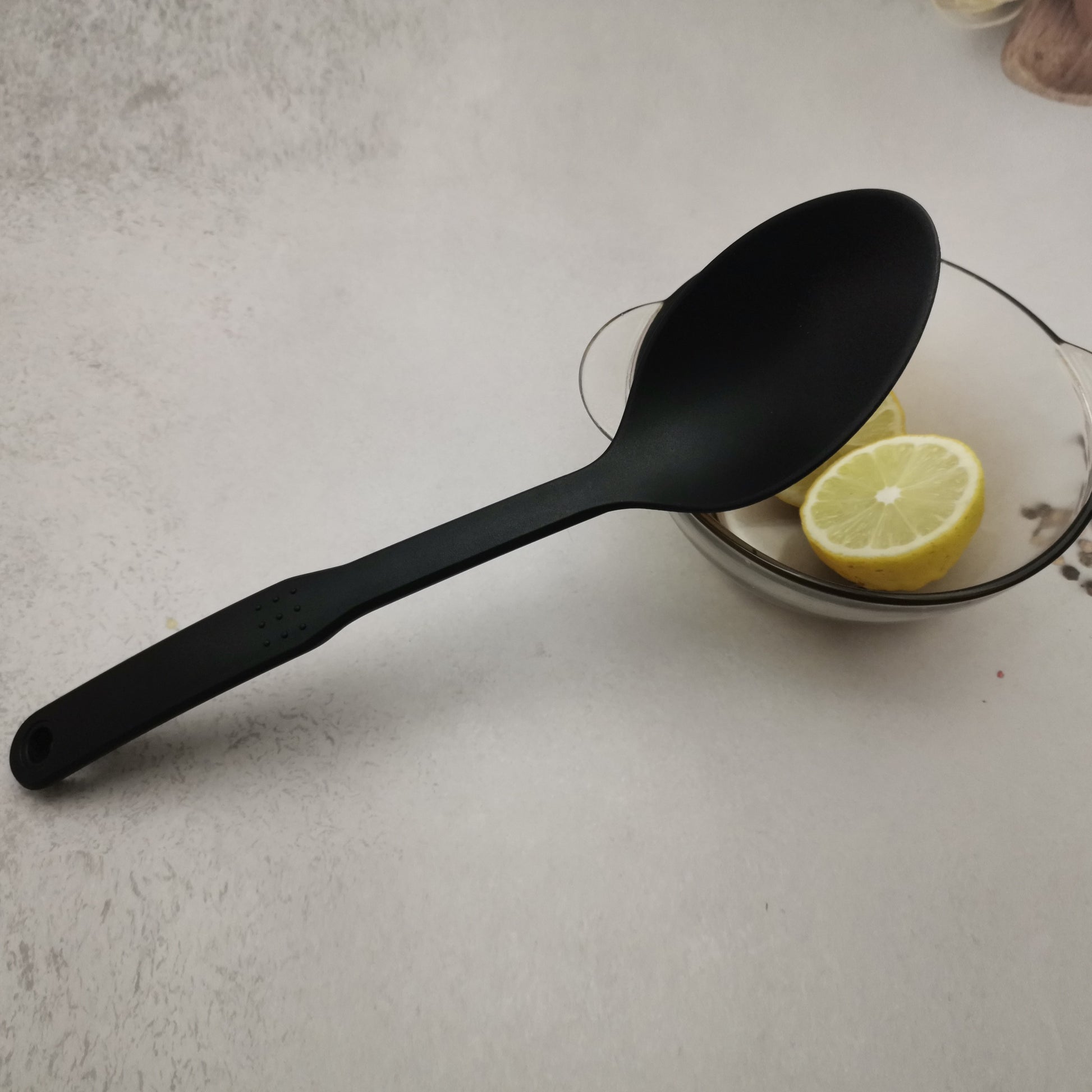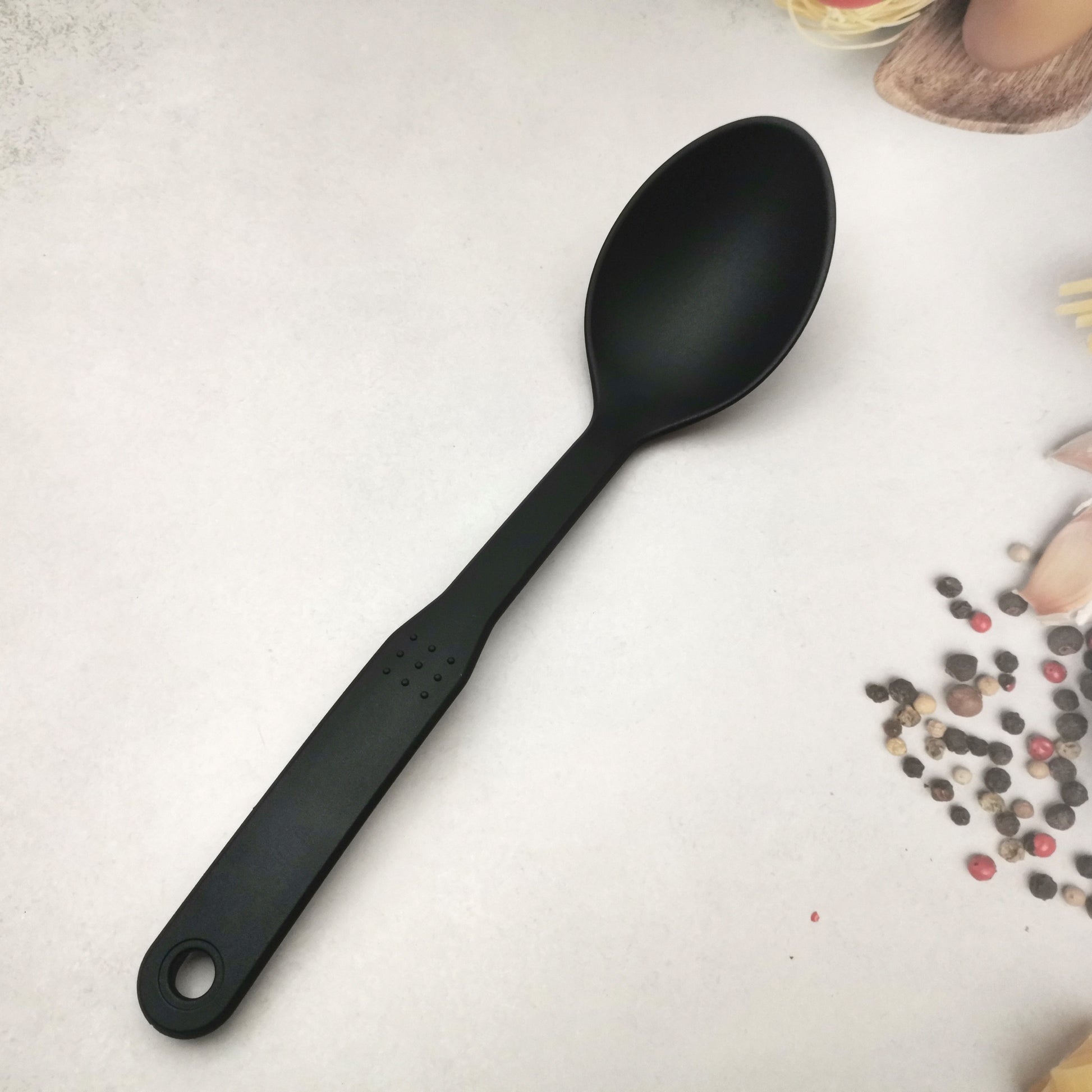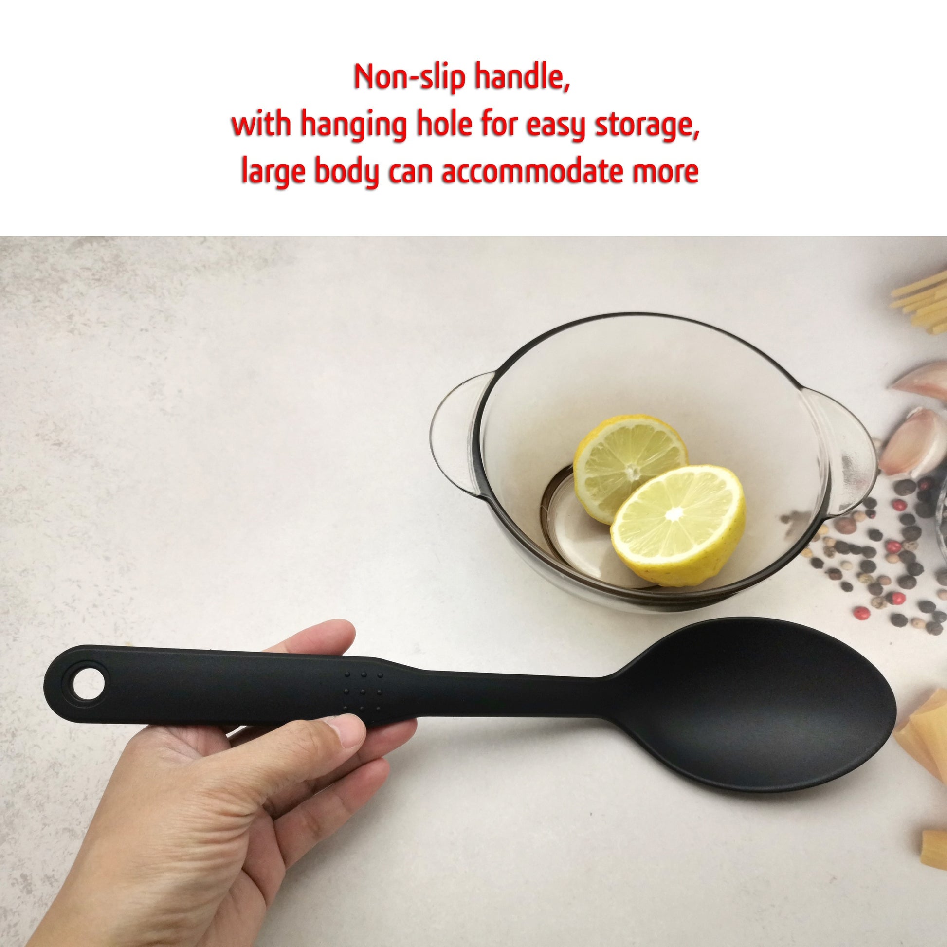 1 большая нейлоновая ложка для сервировки с нескользящей ручкой и отверстием для подвешивания для легкого хранения, идеальный кухонный инструмент.