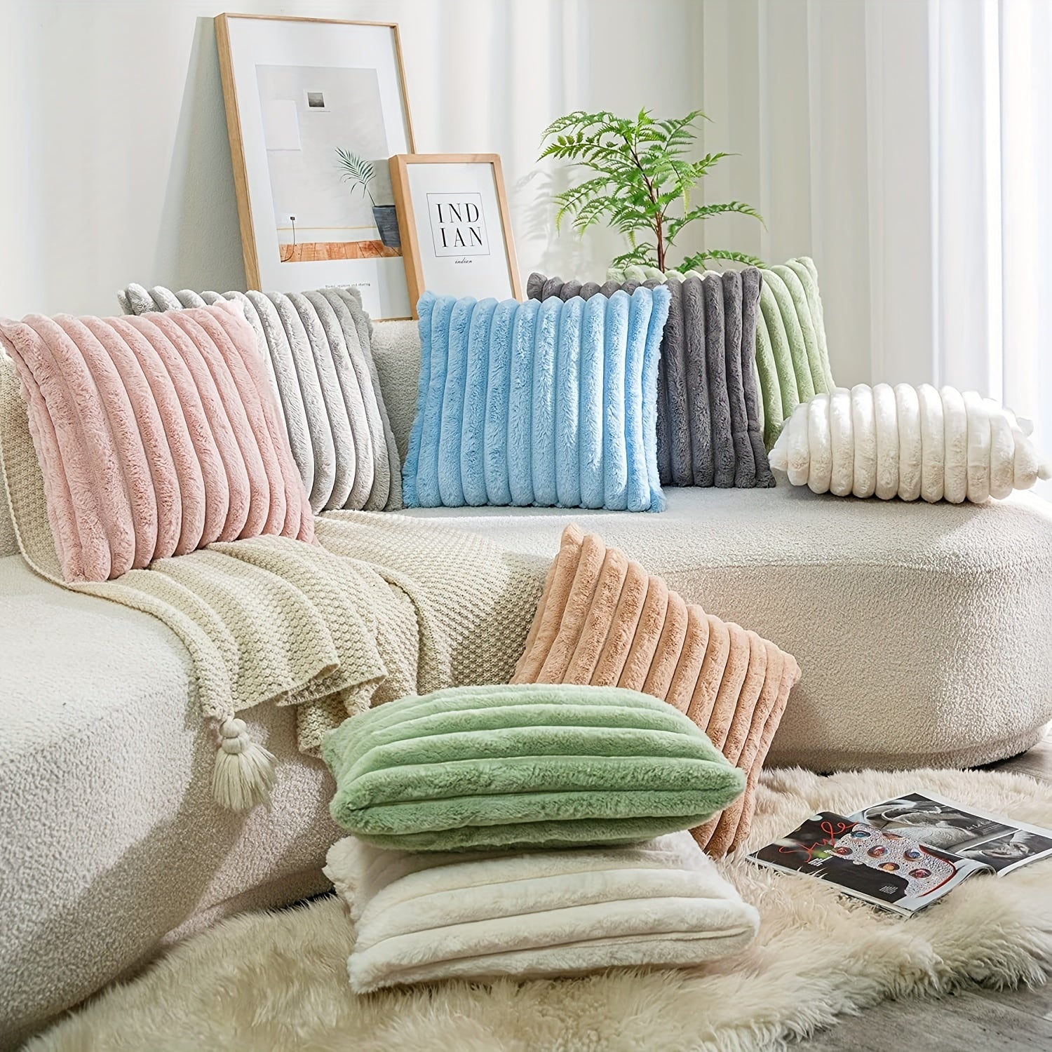 1 штука двусторонние чехлы для подушек из искусственного меха, мягкие полосатые чехлы для дивана, кровати, домашнего декора. Наполнитель подушки не включен.