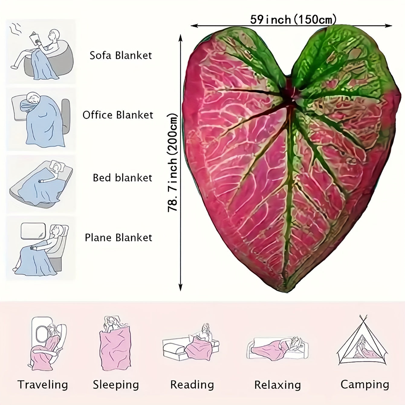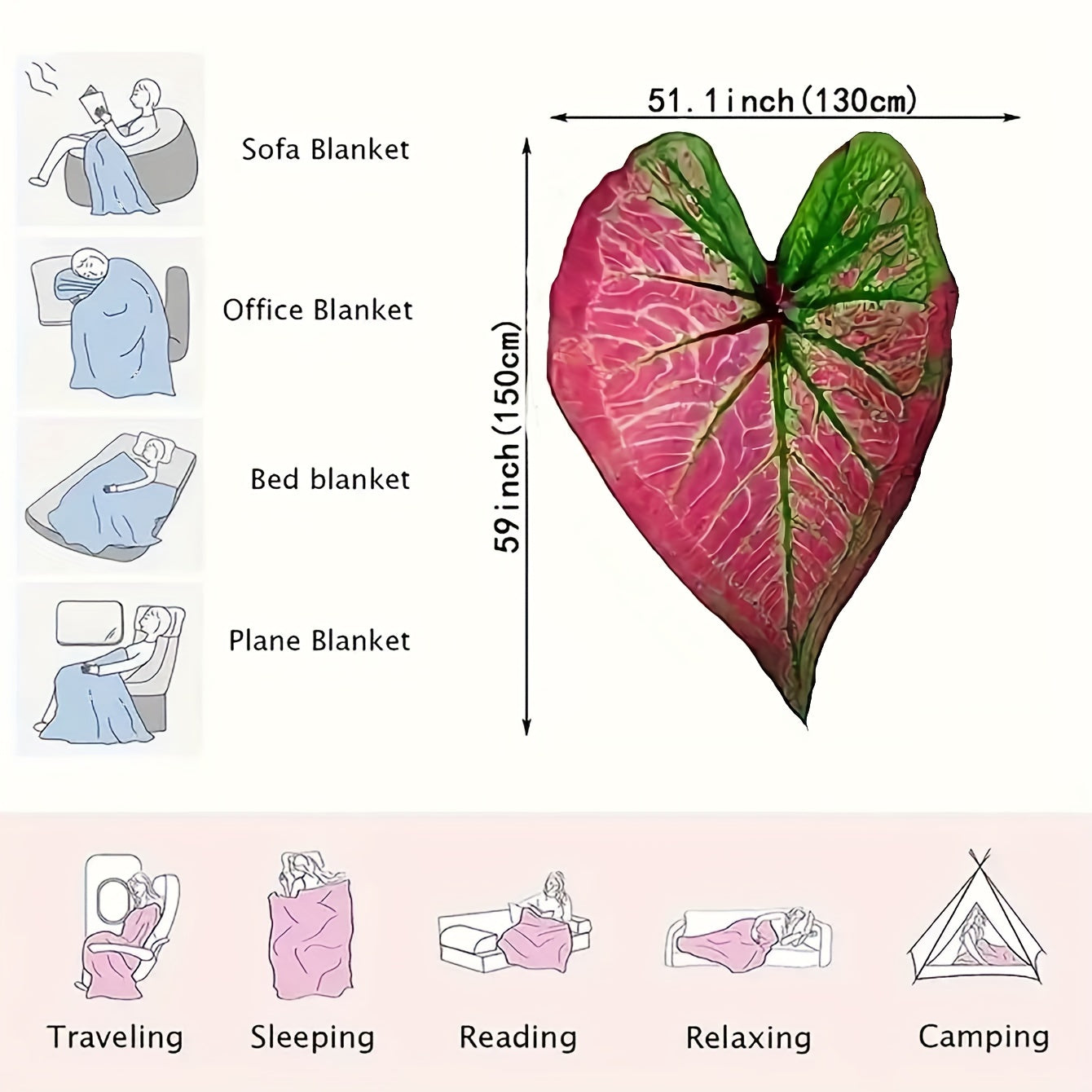 1 шт. плед из фланели в форме листа с креативным дизайном с принтом жилок листа. Этот уютный и мягкий плед идеально подходит для диванов, кроватей, кемпинга и путешествий. Это универсальный, всесезонный плед, который станет отличным подарком для взрослых.