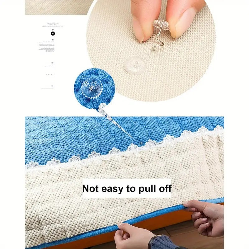 1 штука элегантной прозрачной спиральной зажимной скобы, обеспечивающей невидимый безопасный захват для чехлов на диван и кровать. Это нескользящее домашнее крепежное решение изготовлено из пластика без деревянных компонентов. Только ручная стирка.