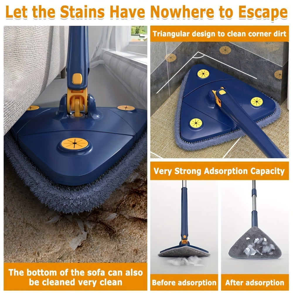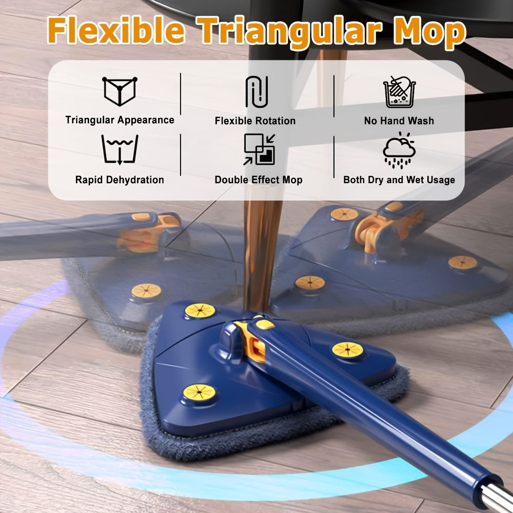 Треугольная вращающаяся швабра для уборки на 360° с длинной ручкой для влажной и сухой уборки пола и стен