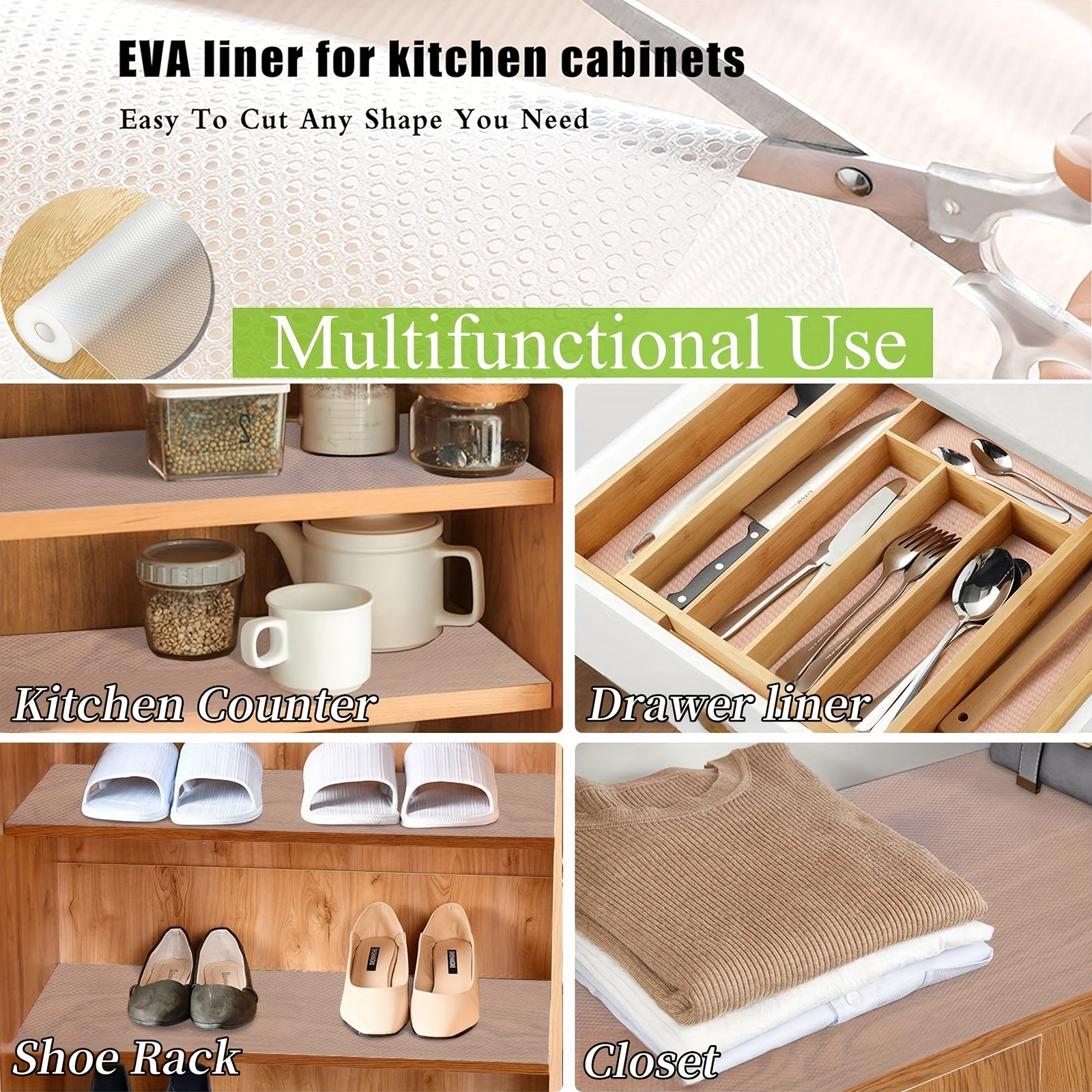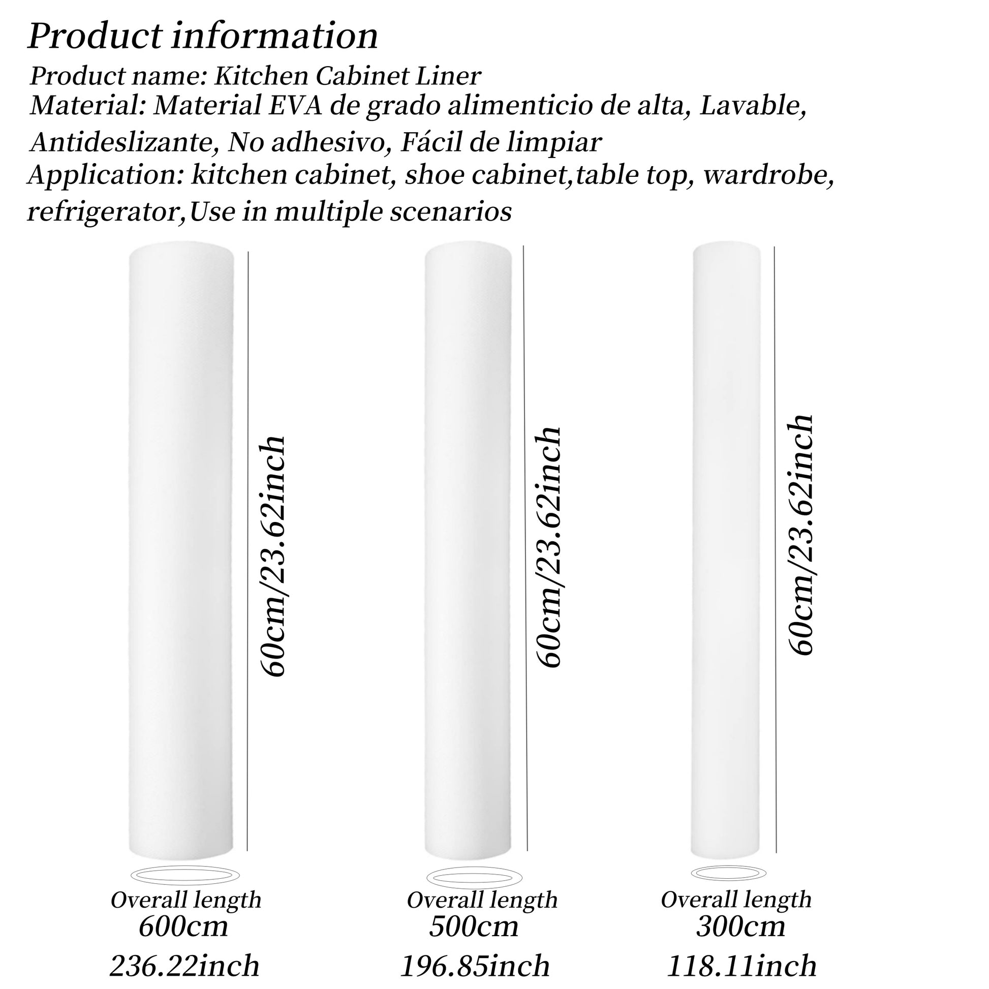 1 рулон водонепроницаемой, маслостойкой виниловой подкладки для полок размером 59,99x601,98 см. Текстурированная поверхность для лучшего сцепления, идеально подходит для кухонь.
