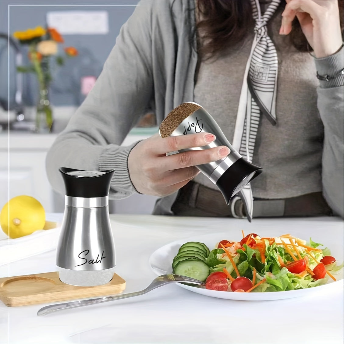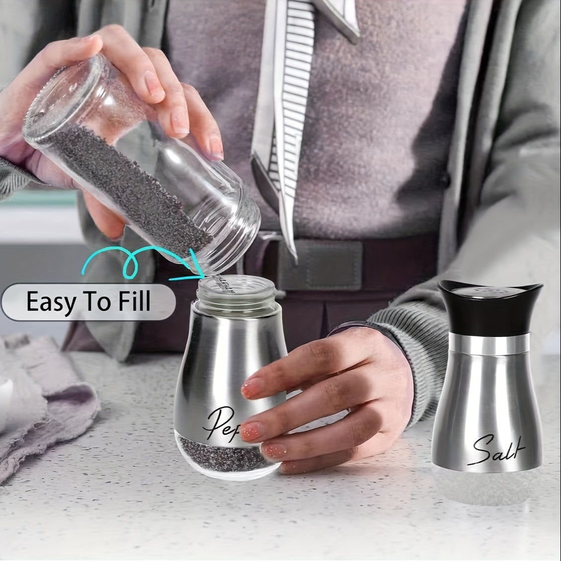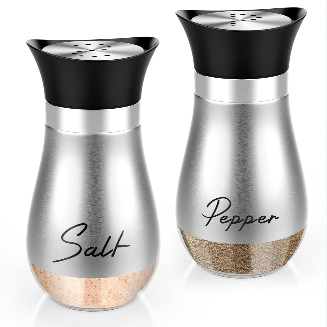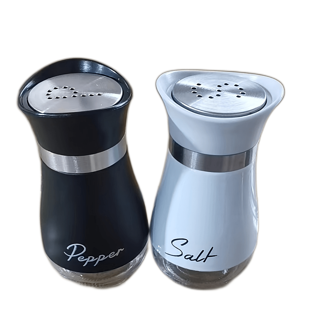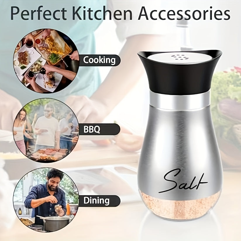 1 набор стеклянных баночек для соли и перца объемом 4 унции с крышками из нержавеющей стали, идеально подходящий для кухонь, столов, автодомов, кемпингов и барбекю. Дизайн с возможностью перезаправки.