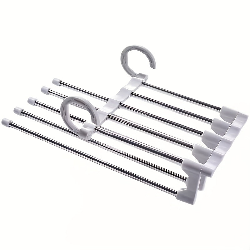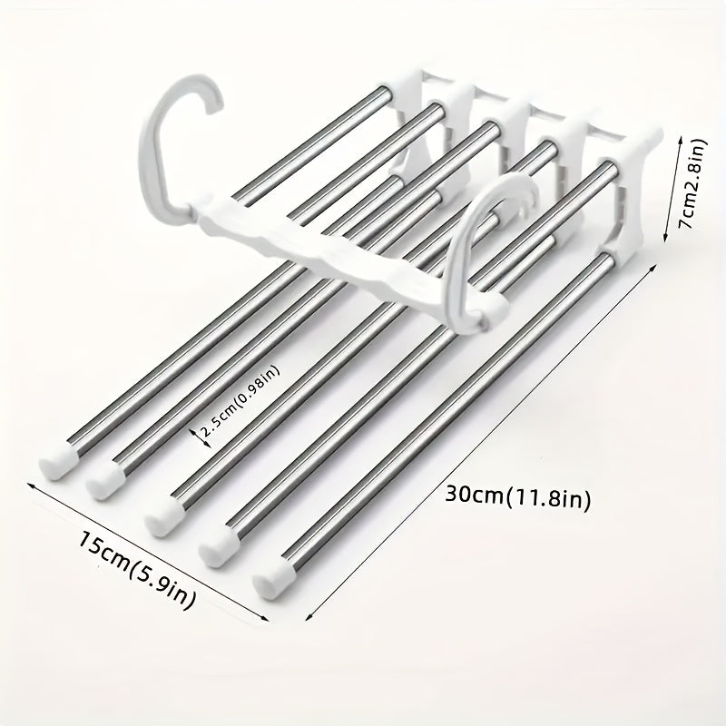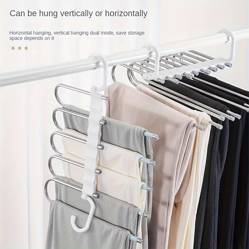 1 Вешалка для брюк из нержавеющей стали с 9 слоями, антискользящее покрытие, 5 крючков; экономит пространство и уменьшает беспорядок на 80% для леггинсов, джинсов и т.д.