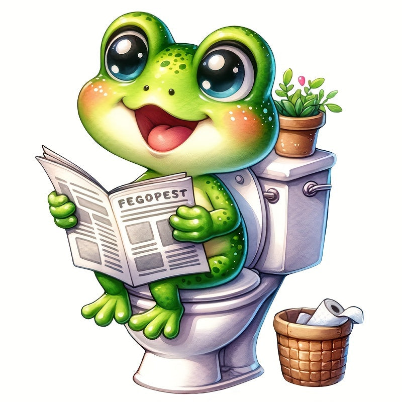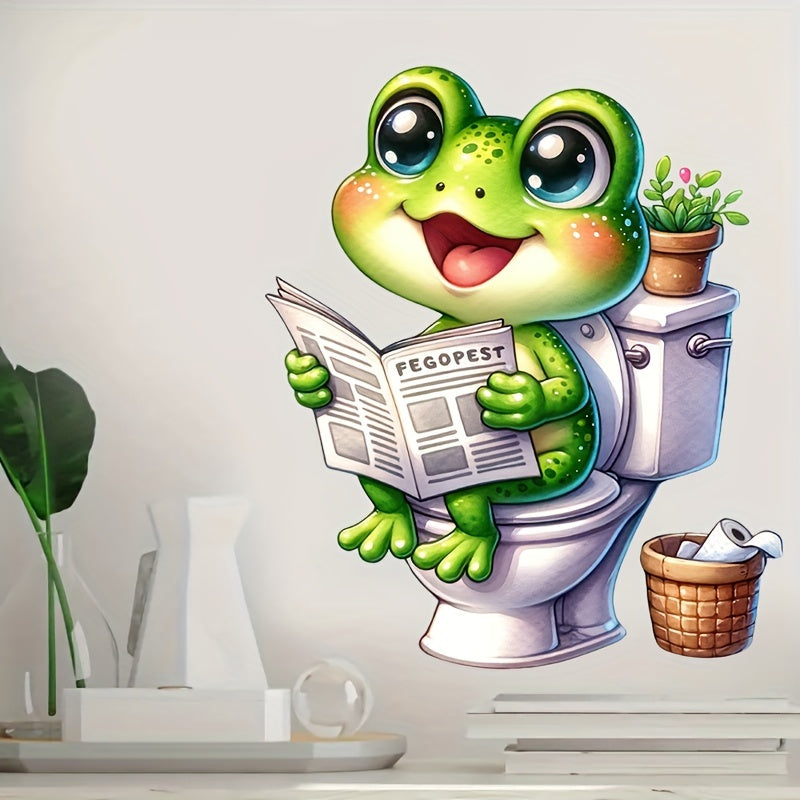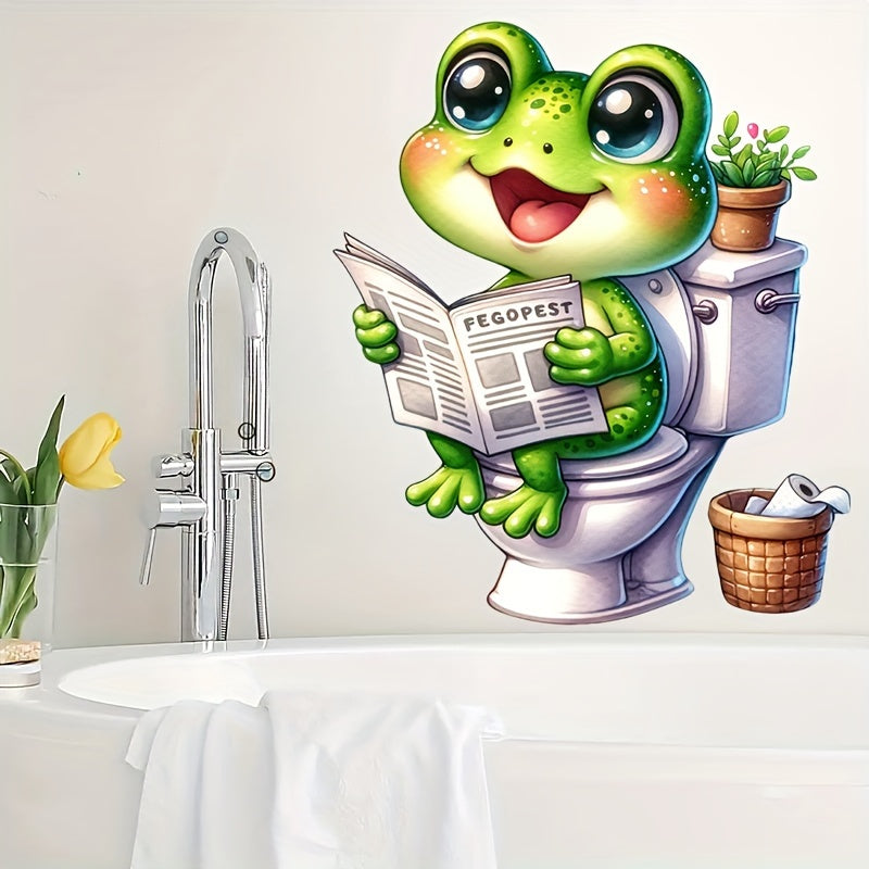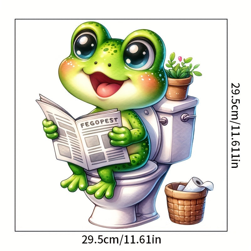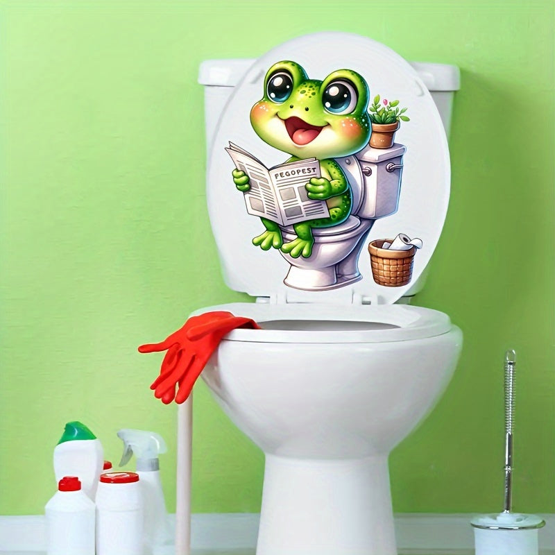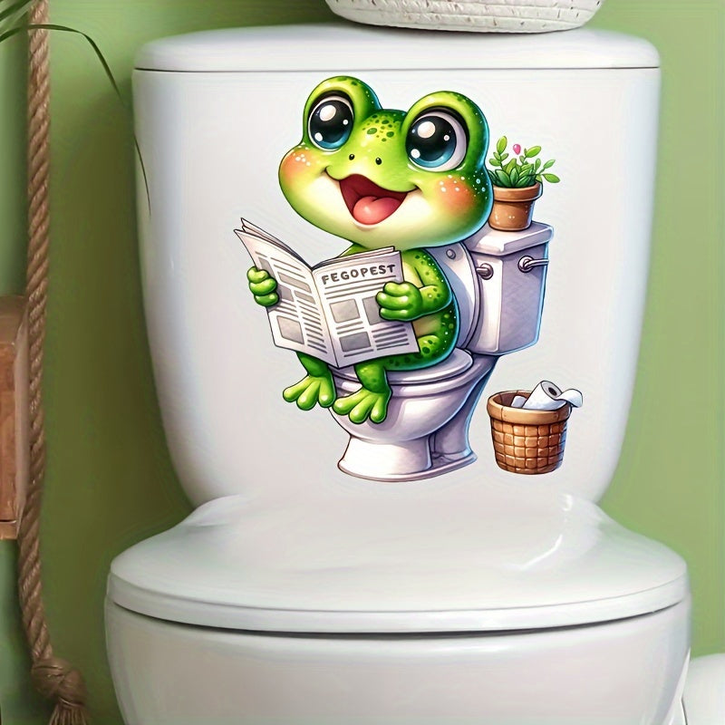 1 Наклейка на бачок унитаза "Веселая лягушка" с самоклеящимся слоем, с принтом животных, полуглянцевая отделка, квадратная форма для пластиковых поверхностей, одноразовый домашний декор