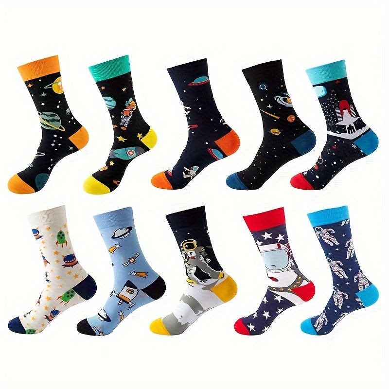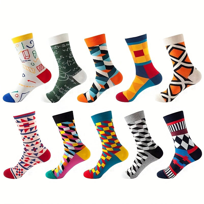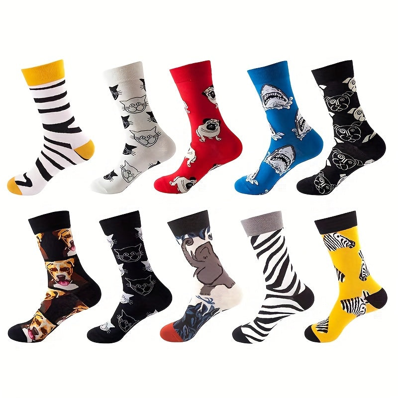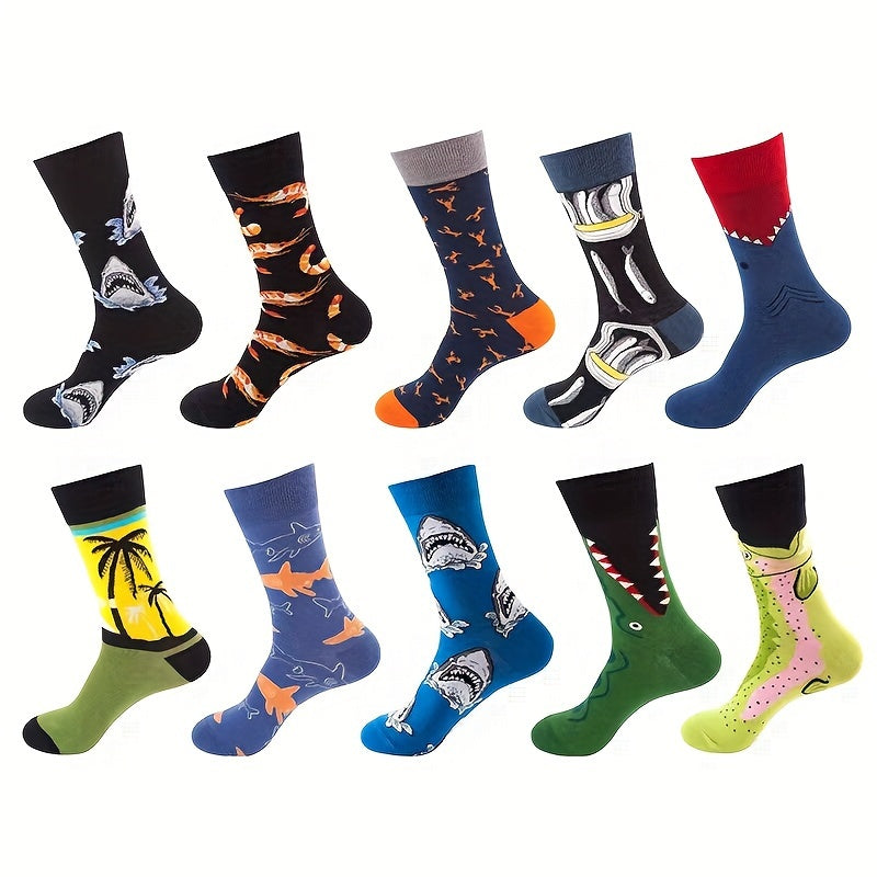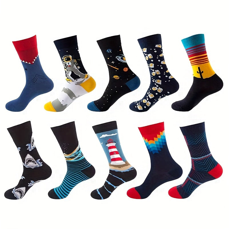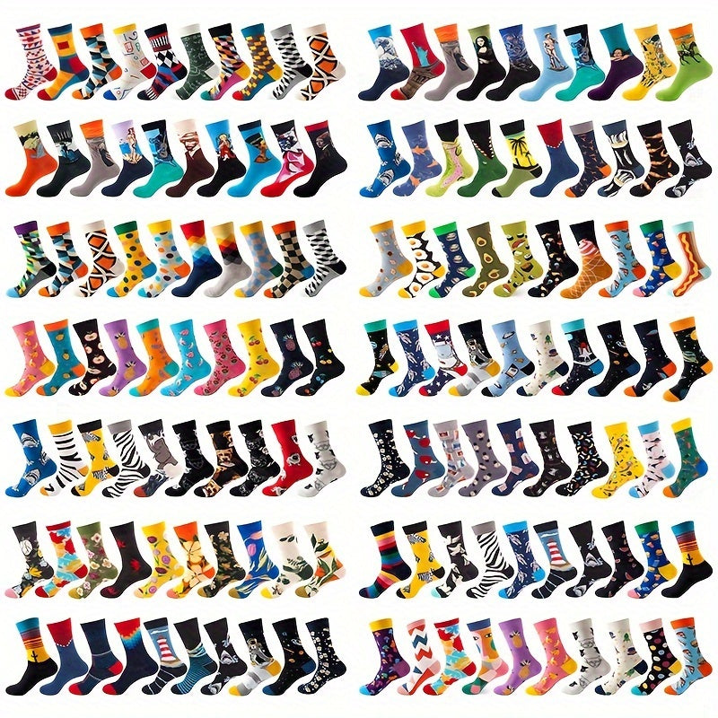 Мужские носки-кастомы 10 пар с мультяшным аниме узором, дышащий хлопковый микс, повседневные, для всех сезонов
