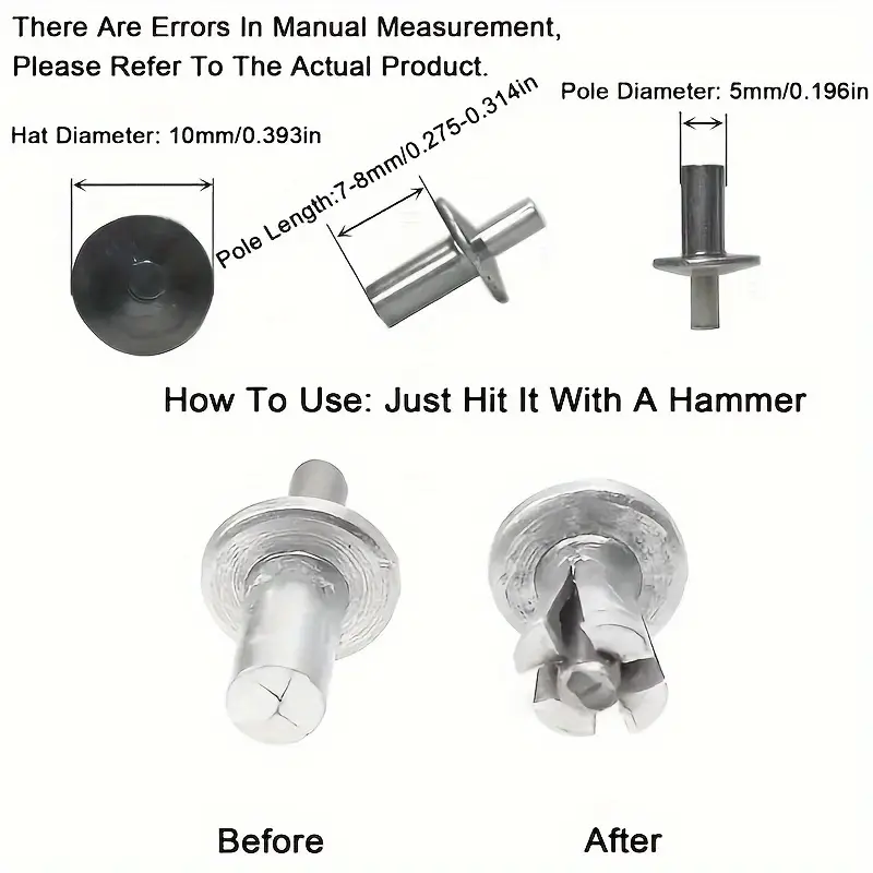 100 шт. алюминиевых плоских заклепок с плоской круглой головкой, расширяющиеся крепежи для бижутерии