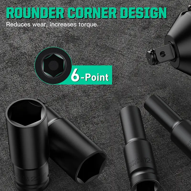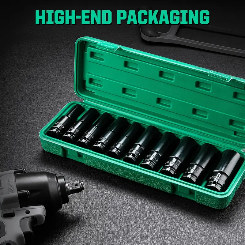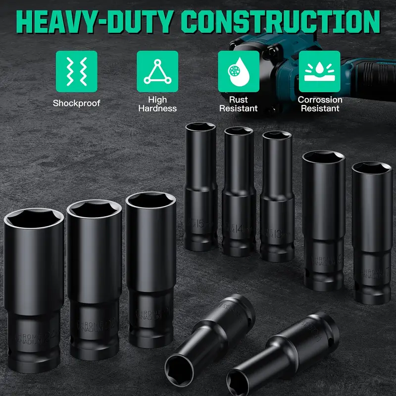 Набор головок для гнезда 10 шт. 10-24 мм с адаптером для ударной дрели, тяжелое исполнение, из углеродистой стали