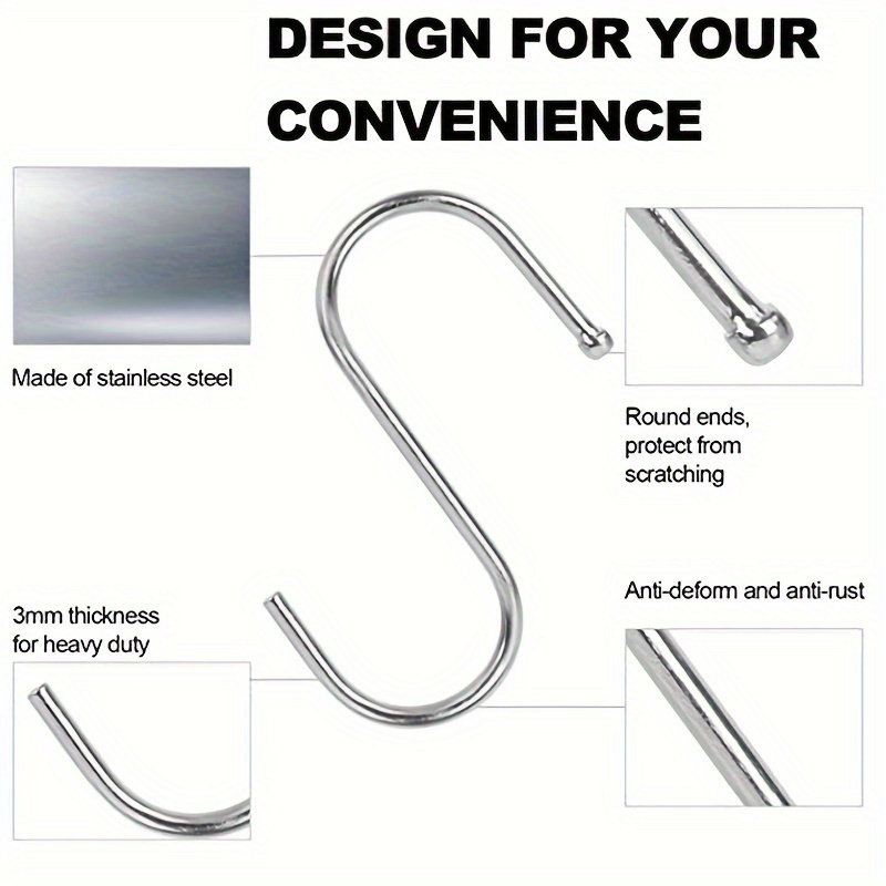 10 шт. крючков S-образных из нержавеющей стали для кухни, ванной, сада, мастерской
