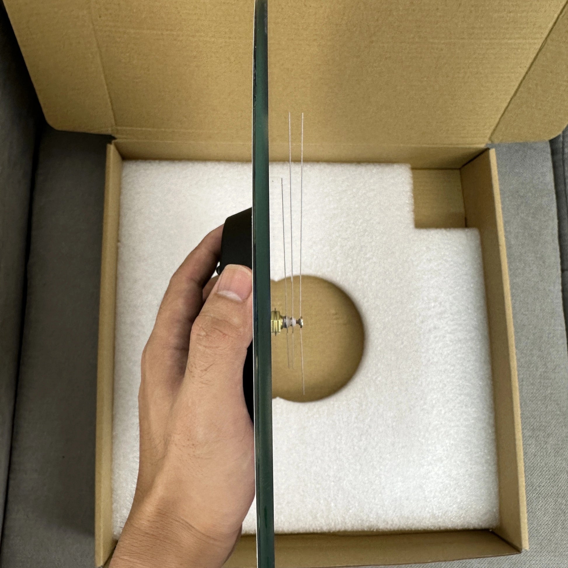 12"/14" Silent Wall Clock with Dark Blue Geometric Design. Made with 4mm Tempered Glass and Japanese Quartz Movement. Perfect for indoor and outdoor decor. Great gift option (Battery not included).
