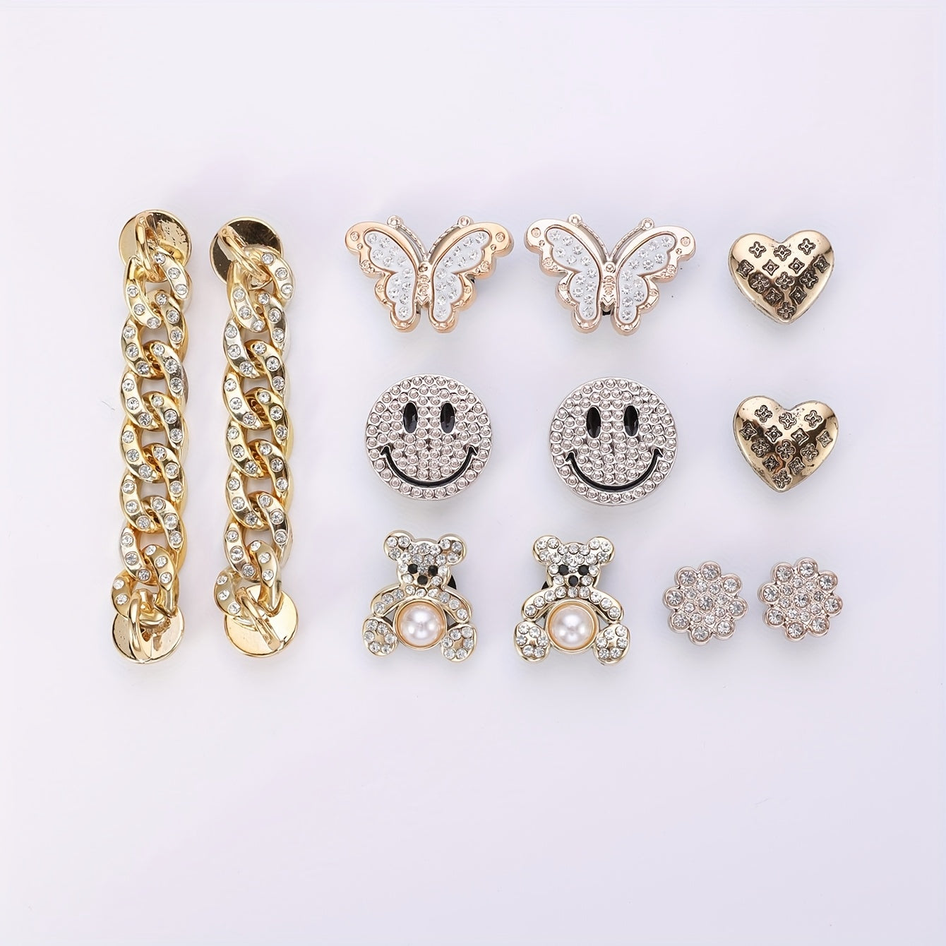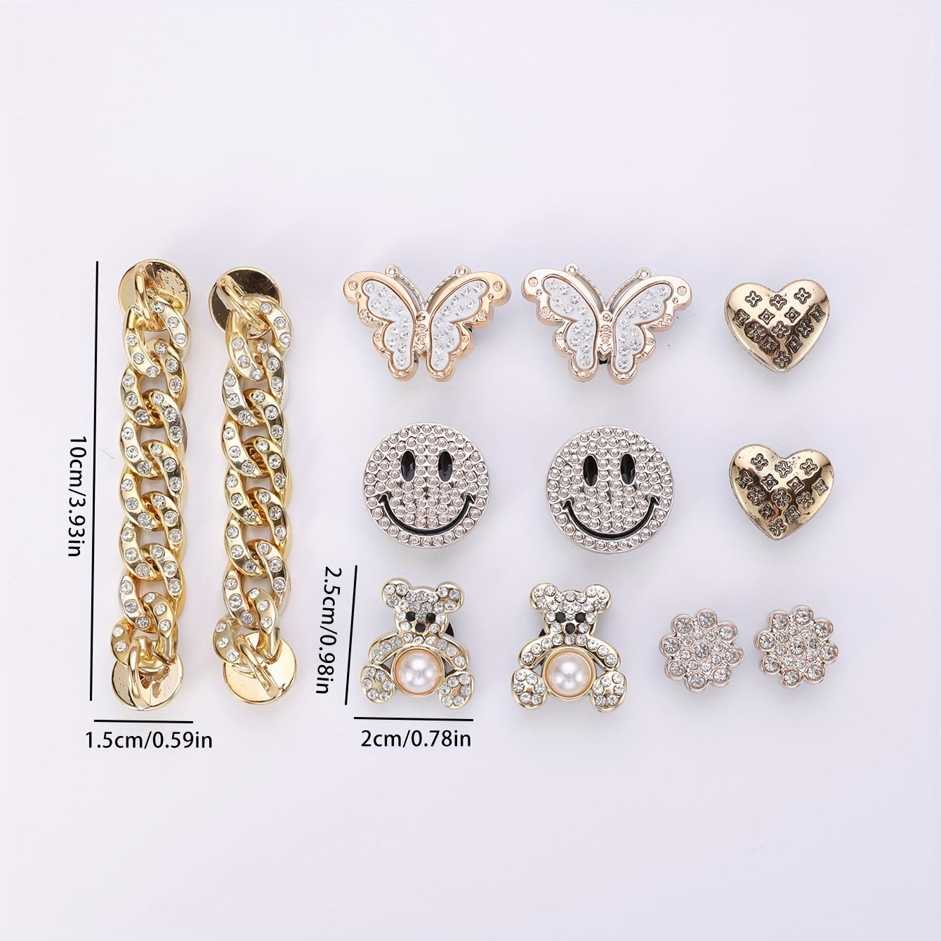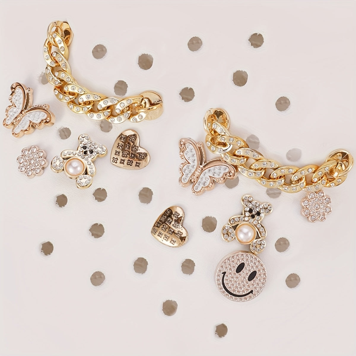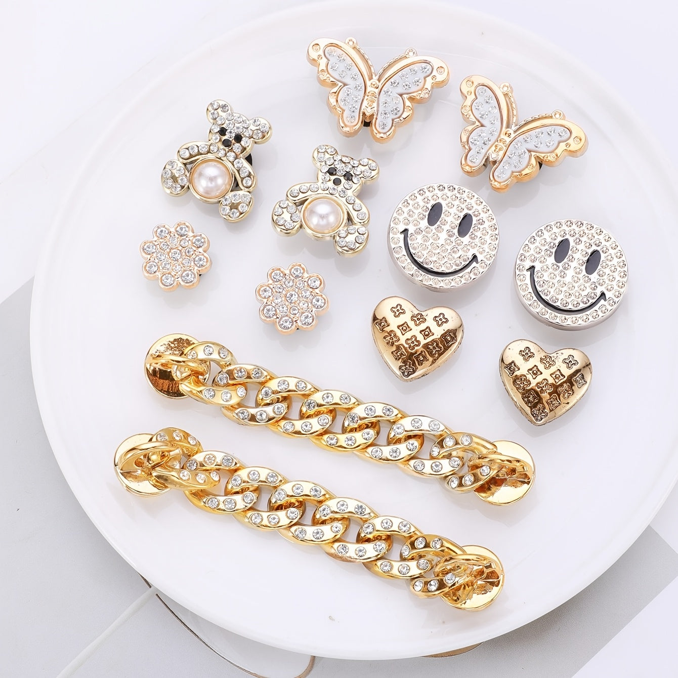 12 шт. золотых пряжек для обуви, бабочка, медведь, сердце, подвеска, для рукоделия, подарок, аксессуар