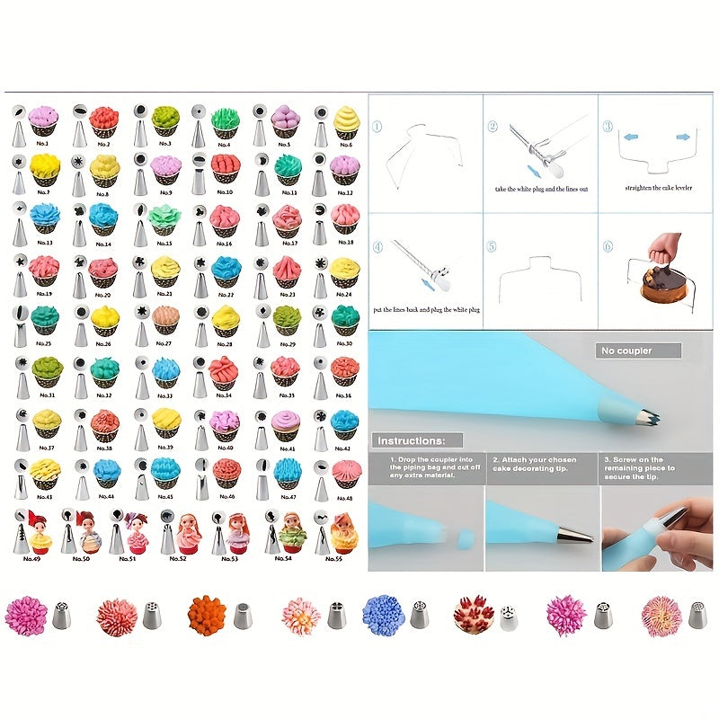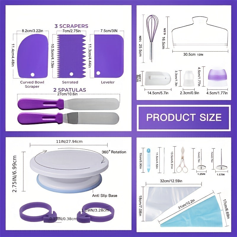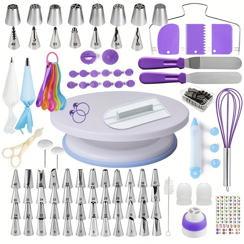Набор для украшения торта из 137 предметов с поворотным столом, кондитерским мешком, русскими насадками и другими аксессуарами — идеальный вариант для начинающих