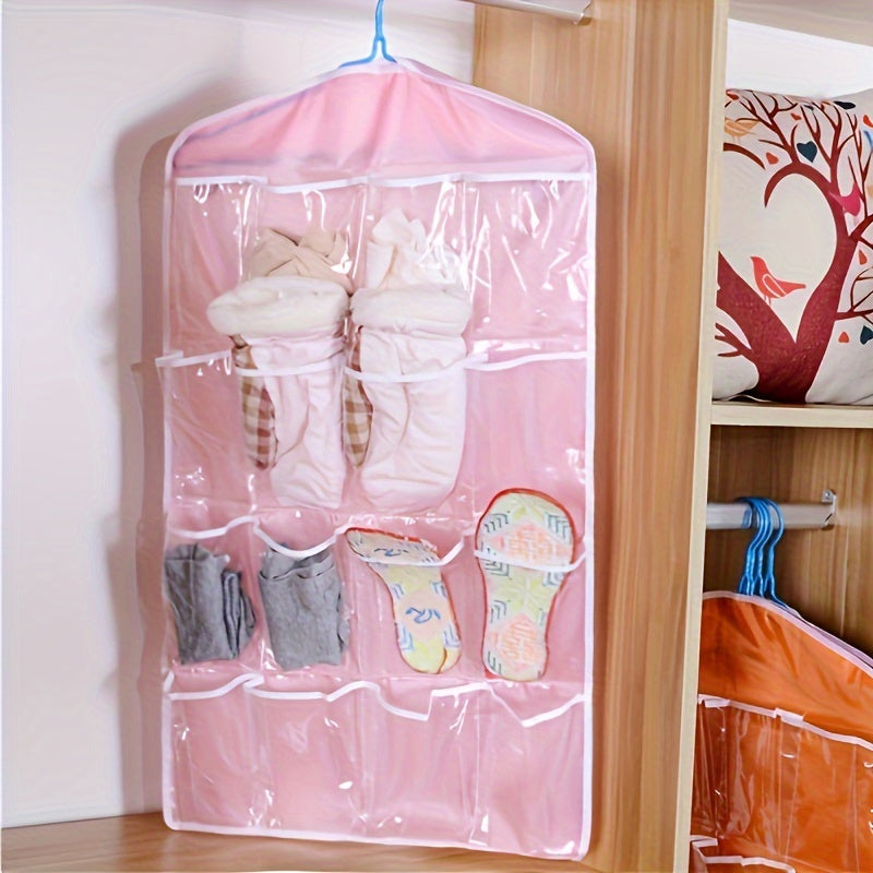 16-карманный висячий органайзер из прочного полиэстера с прозрачными сетчатыми карманами для одежды, носок и нижнего белья. Экономия пространства для организации в спальне, шкафу или общежитии.
